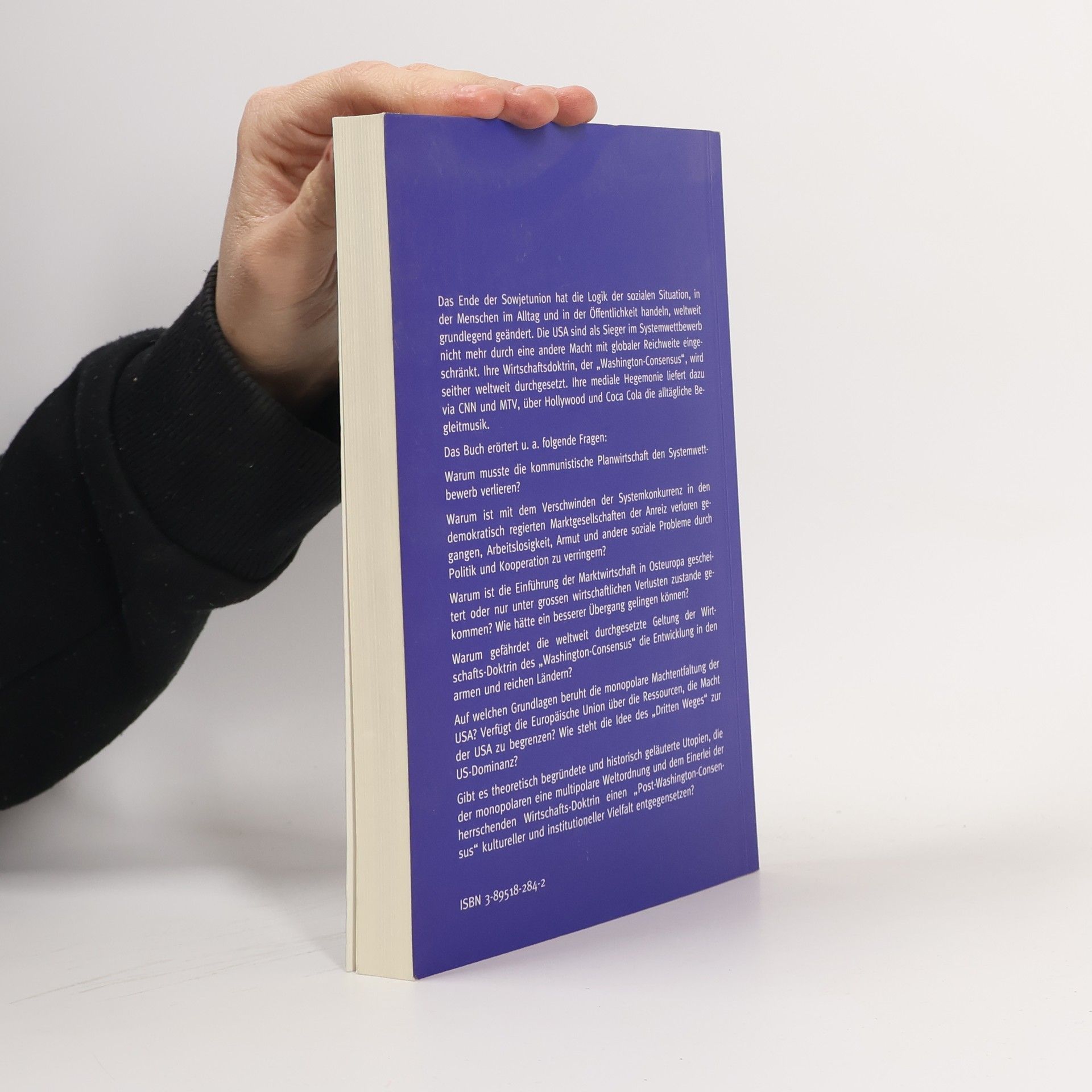 Das Ende der Sowjetunion hat die soziale Dynamik weltweit verändert. Die USA, als Sieger im Systemwettbewerb, sind nicht mehr durch andere Mächte eingeschränkt, und ihre Wirtschaftsdoktrin, der „Washington-Consensus“, wird global durchgesetzt. Diese mediale Hegemonie wird durch Plattformen wie CNN, MTV, Hollywood und Coca Cola unterstützt. Das Buch behandelt zentrale Fragen: Warum musste die kommunistische Planwirtschaft scheitern? Mit dem Wegfall der Systemkonkurrenz in demokratischen Marktgesellschaften schwand der Anreiz, soziale Probleme wie Arbeitslosigkeit und Armut politisch anzugehen. Zudem wird untersucht, warum die Marktwirtschaft in Ostdeutschland und den Nachfolgestaaten der Sowjetunion oft nur unter großen Verlusten eingeführt werden konnte und wie ein besserer Übergang hätte gelingen können. Die globale Geltung des „Washington-Consensus“ wird als Bedrohung für die Entwicklung in armen und reichen Ländern betrachtet. Es wird auch die monopolare Macht der USA analysiert und die Frage aufgeworfen, ob die EU über die Ressourcen verfügt, diese Macht zu begrenzen. Zudem wird die Idee eines Dritten Weges sowie die Möglichkeit von Utopien erörtert, die eine multipolare Weltordnung und kulturelle Vielfalt im Gegensatz zur herrschenden Wirtschafts-Doktrin fördern könnten.