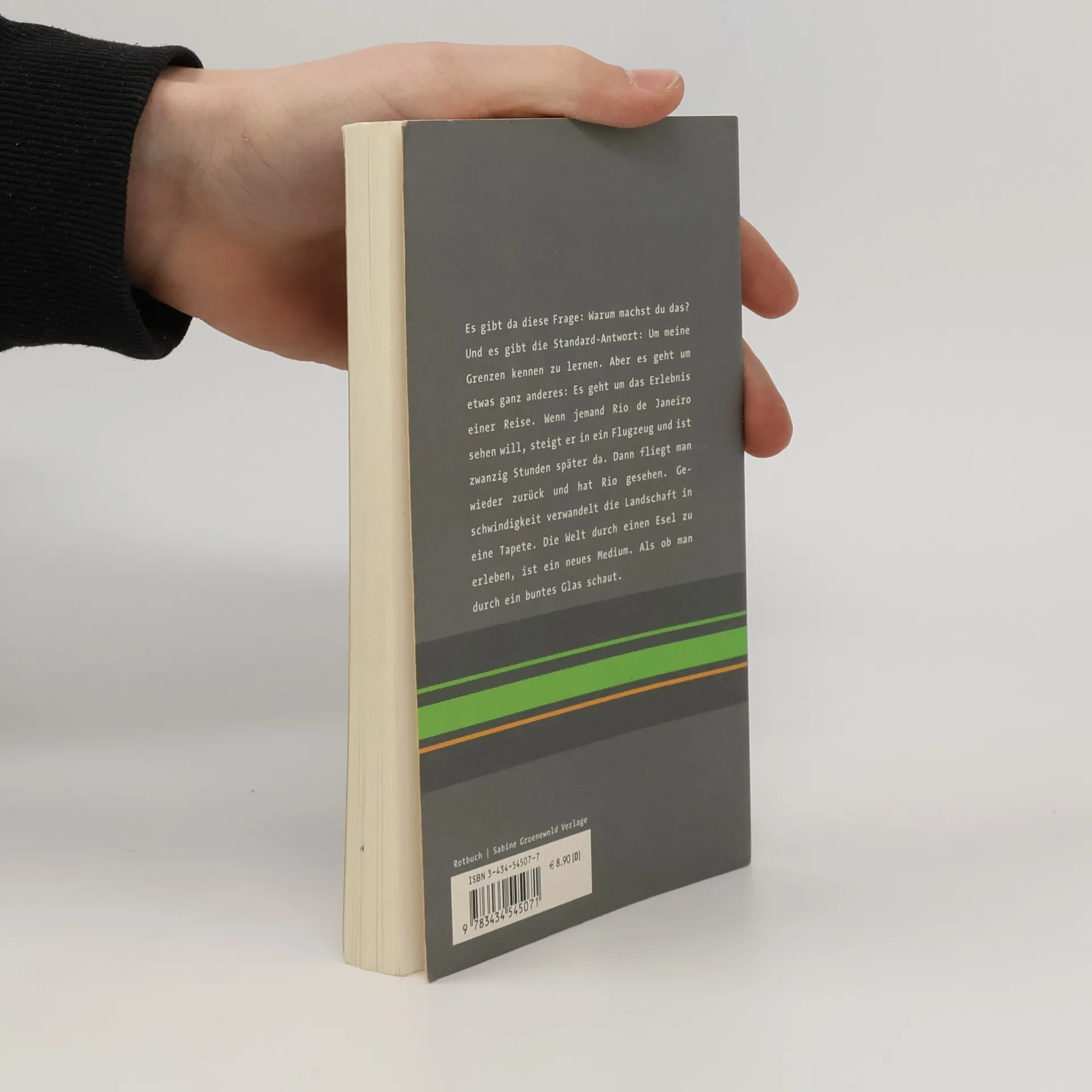 Es gibt da diese Frage: Warum machst Du das? Und es gibt die Standard-Antwort: Um meine Grenzen kennen zu lernen. Aber es geht um etwas ganz anderes: Es geht um das Erlebnis einer Reise. Wenn jemand Rio de Janeiro sehen will, steigt er in ein Flugzeug und ist zwanzig Stunden später da. Dann fliegt man wieder zurück und hat Rio gesehen. Geschwindigkeit verwandelt die Landschaft in eine Tapete. Die Welt durch einen Esel zu erleben, ist ein neues Medium. Also ob man durch ein buntes Glas schaut.