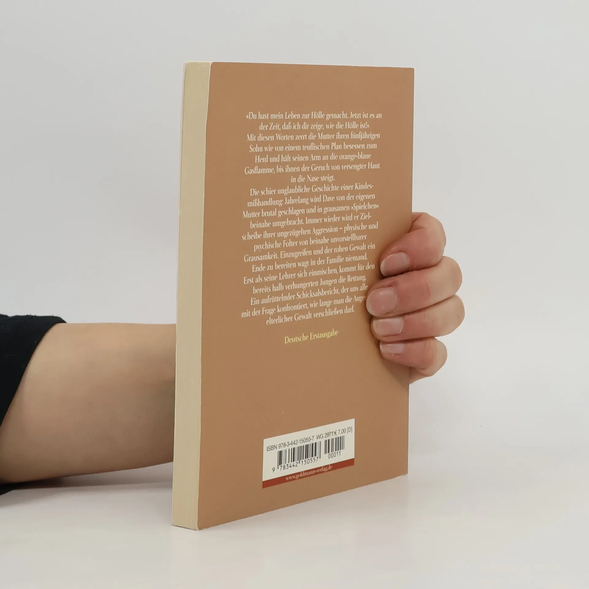 Das Trauma einer Kindheit: Dave wird von der eigenen Mutter gequält und mißhandelt. Von blauen Flecken übersät und halb verhungert, fällt der Junge auf, weil er Mitschülern das Pausenbrot stiehlt. Bis seine Lehrer es wagen, gegen die Mutter einzuschreiten, vergehen Jahre. Es gelingt ihm, sich aus der Hölle zu befreien. Ein erschütternder Bericht, geschildert aus der Perspektive des kleinen Jungen, der uns alle mit der Frage konfrontiert, wie lange man die Augen vor elterlicher Gewalt verschließen darf.