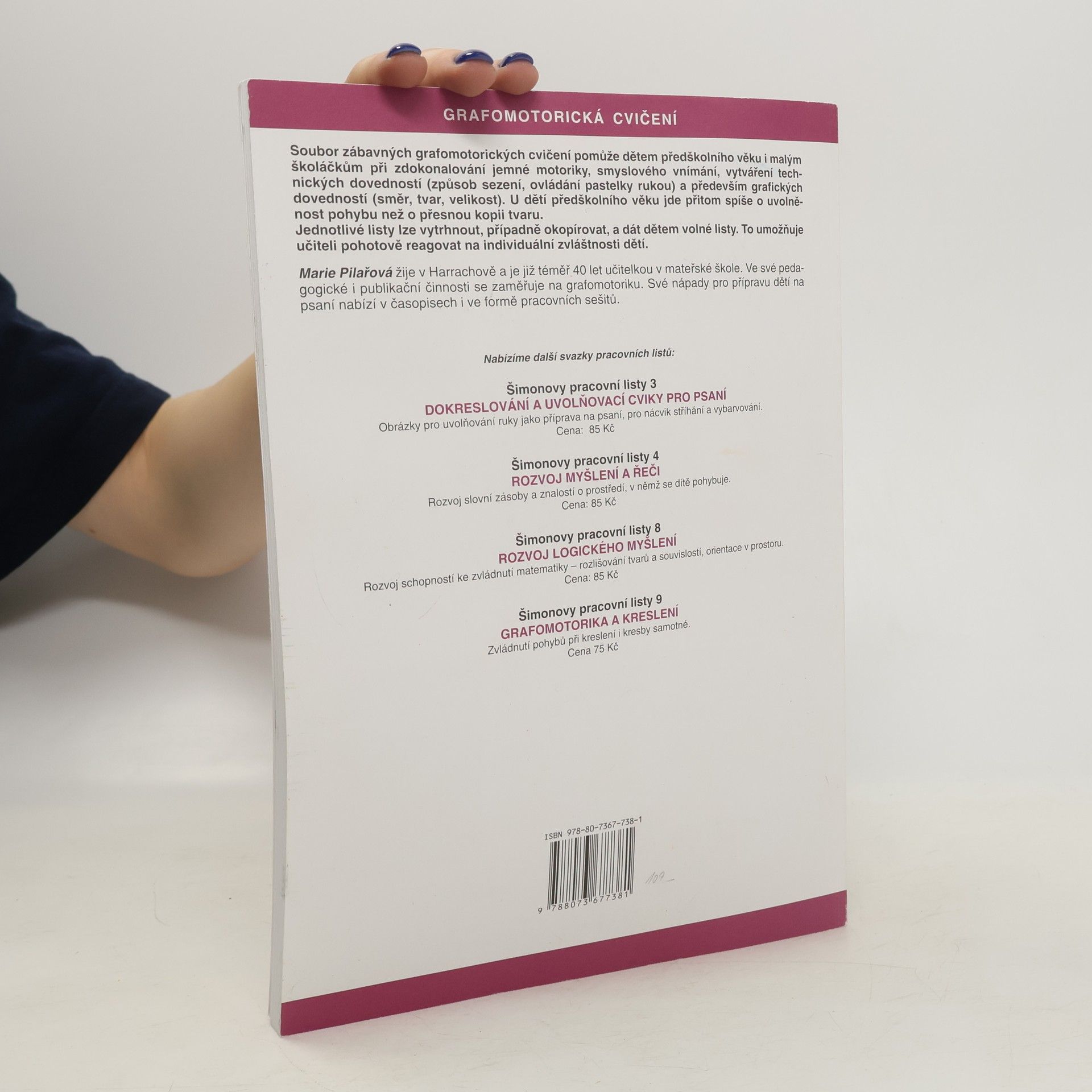 Předkládaný pracovní sešit pomůže dítěti i jeho rodičům. Dítě je motivováno ke kreslení již v průběhu nácviku nejjednodušších rovných čar. Spolu s rostoucími nároky na grafické dovednosti dítěte se úměrně zvyšuje i obtížnost kreseb. Metodiku autorka ověřila při práci s dětmi s dysgrafií.