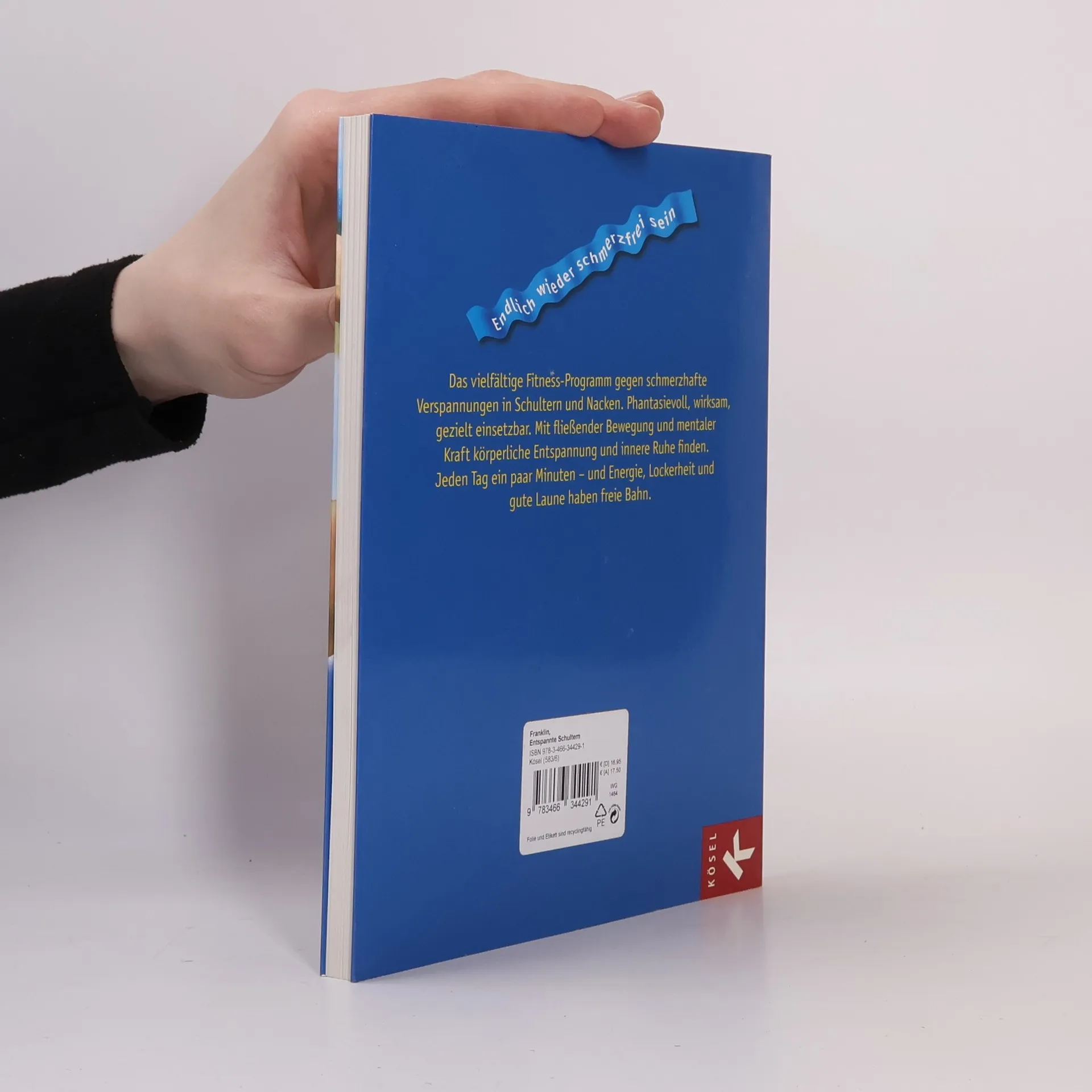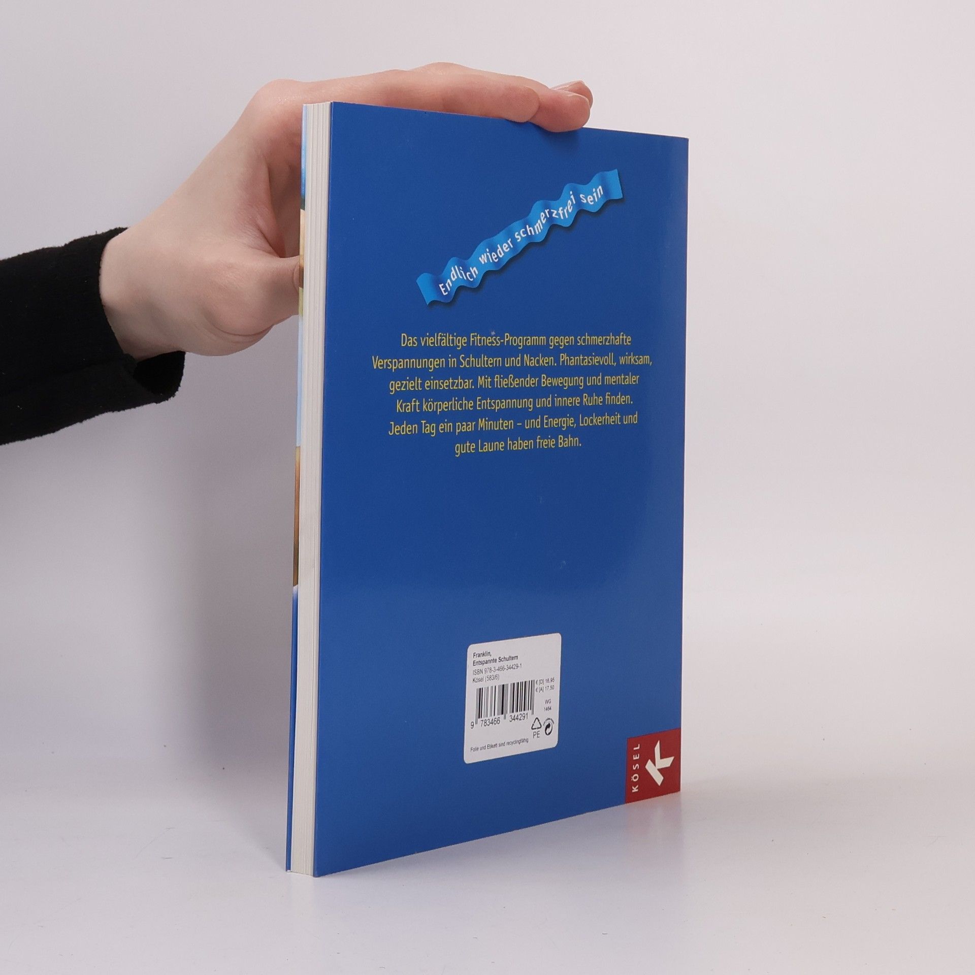 Schultern schmelzen wie Vanilleeis „Wir sind im Stress und haben wenig Zeit. Und wieder schmerzt der Nacken und die Schultern sind verspannt ... Was können wir tun, um auf Dauer beweglich zu sein und den täglichen Anforderungen gelassener zu begegnen? In diesem neuen Buch von Eric Franklin findet sich alles an Übungen, was der schmerzgeplagte Zeitgenosse braucht, um spielerisch locker zu werden: Mit Bewegung, Imagination, Berührung, Bällen, Bändern, Power und Präsenz kann jeder für sich und sein Problem etwas tun. Die Übungen lassen sich gezielt einsetzen, sind äußerst wirksam und verwandeln Schmerzen auf nachhaltige Weise in Wohlgefühl. Energie und Lebenslust kehren zurück. Wir gehen leicht erhobenen Hauptes durch den Alltag, denn Schultern und Nacken haben gute Laune. “ Ausstattung: Mit Fotos u. Illustr.