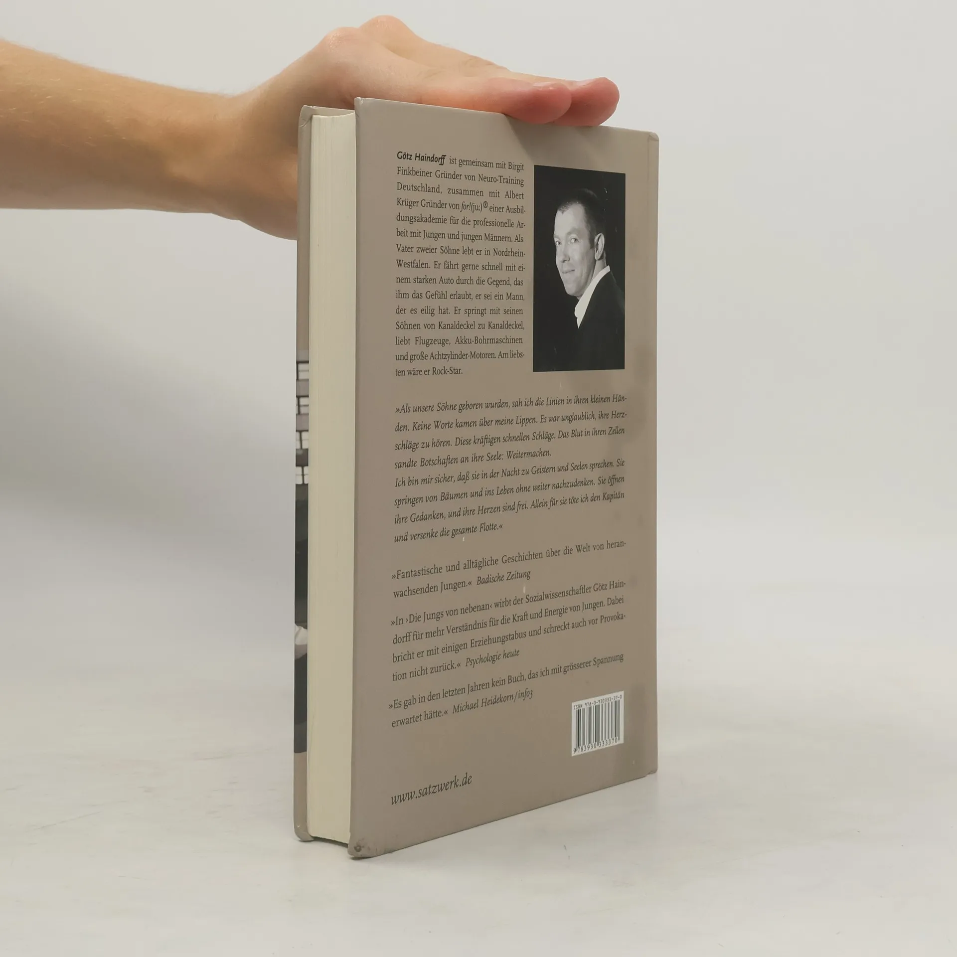 Haindorffs Buch ist keine Gebrauchsanweisung für überforderte Erzieher und mehr als ein Ratgeber: ein Reiseführer in die faszinierende Seelenwelt heranwachsender Männer, der zeigt, was Jungen brauchen, um ihr Leben zu meistern. Es sind oft einfache Dinge, die große Wirkung haben und die Eltern tun können. Was zu welchem Zeitpunkt wichtig und richtig ist, zeigt Haindorff an vielen praktischen Beispielen. Ein völlig neuer Blick auf die Dynamik und den spezifischen Verlauf der männlichen Adoleszenz. „In die `Jungs von nebenan´ wirbt Götz Haindorff für mehr Verständnis für die Kraft und Energie von Jungen. Dabei bricht er mit einigen Erziehungstabus und schreckt auch vor Provokation nicht zurück.“ (Psychologie heute)