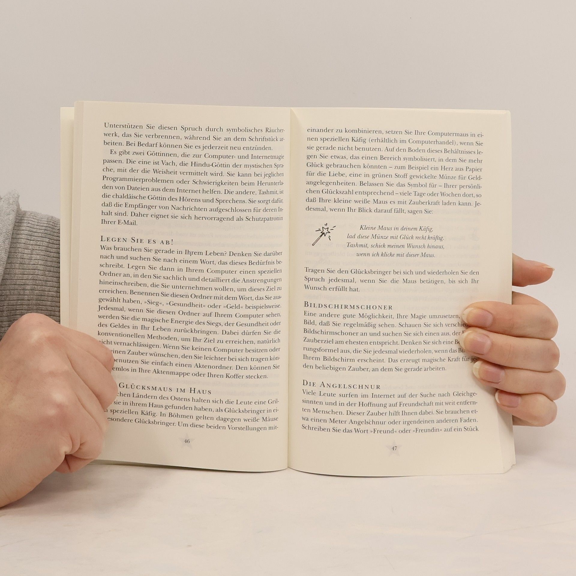 Etwas Zimt auf die Schuhe, bevor Sie aus dem Haus gehen, und Sie werden einen charismatischen Auftritt haben. Über 100 solcher kleinen Zaubereien für Glück und Erfolg in der Liebe und im Beruf, für zu Hause und unterwegs sind hier versammelt. Alles, was man für diese magischen Rituale benötigt, sind ein paar alltägliche Hilfsmittel, die richtigen Sprüche - und den Glauben daran, dass es funktioniert. Die himmlischen Helferinnen, denen Patricia Telesco ihre Zauberlehrlinge anempfiehlt, sind Göttinnen verschiedenster Kulturen. Auch wenn die Autorin ihre Sache durchaus ernst nimmt, kommt der Humor nicht zu kurz, zum Beispiel wenn man sich versehentlich verzaubert hat.§§