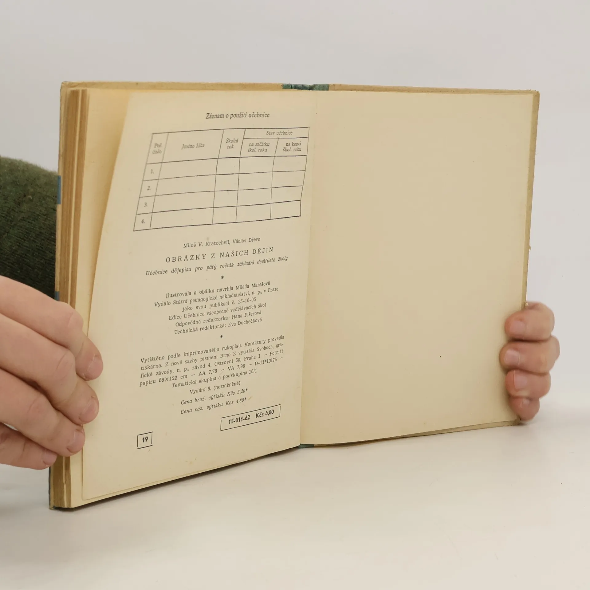 Obrázky z našich dějin pro 5. ročník základní devítileté školy, Miloš Václav Kratochvíl, Václav Dřevo