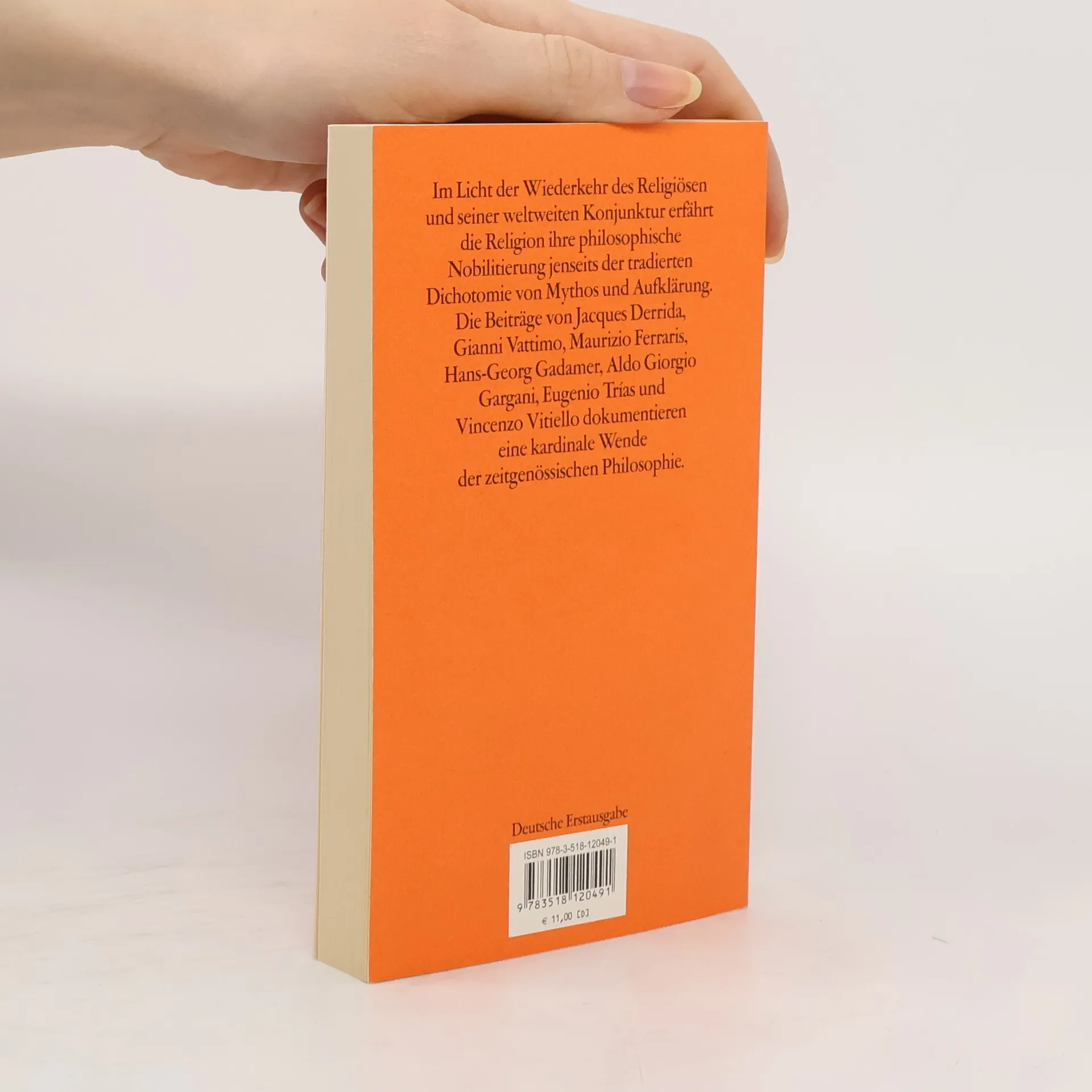 Im Licht der Wiederkehr des Religiösen und seiner weltweiten Konjunktur erfährt die Religion ihre philosophische Nobilitierung jenseits der tradierten Dichotomie von Mythos und Aufklärung. Die Beiträge von Jacques Derrida, Gianni Vattimo, Maurizio Ferraris, Hans-Georg Gadamer, Aldo Giorgio Gargani, Eugenio Trías und Vincenzo Vitiello dokumentieren eine kardinale Wende der zeitgenössischen Philosophie.