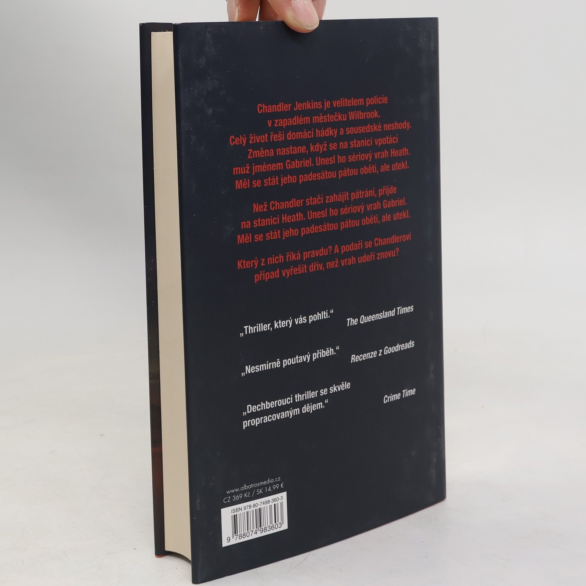 Vrahovou rukou už zemřelo 54 obětí. Kdo bude mít číslo 55? Chandler Jenkins je velitelem policie v zapadlém městečku Wilbrook. Celý život řeší domácí hádky a sousedské neshody. Změna nastane, když se na stanici vpotácí muž jménem Gabriel. Unesl ho sériový vrah Heath. Měl se stát jeho padesátou pátou obětí, ale utekl. Než Chandler stačí zahájit pátrání, přijde na stanici Heath. Unesl ho sériový vrah Gabriel. Měl se stát jeho padesátou pátou obětí, ale utekl. Který z nich říká pravdu? A podaří se Chandlerovi případ vyřešit dřív, než vrah udeří znovu?