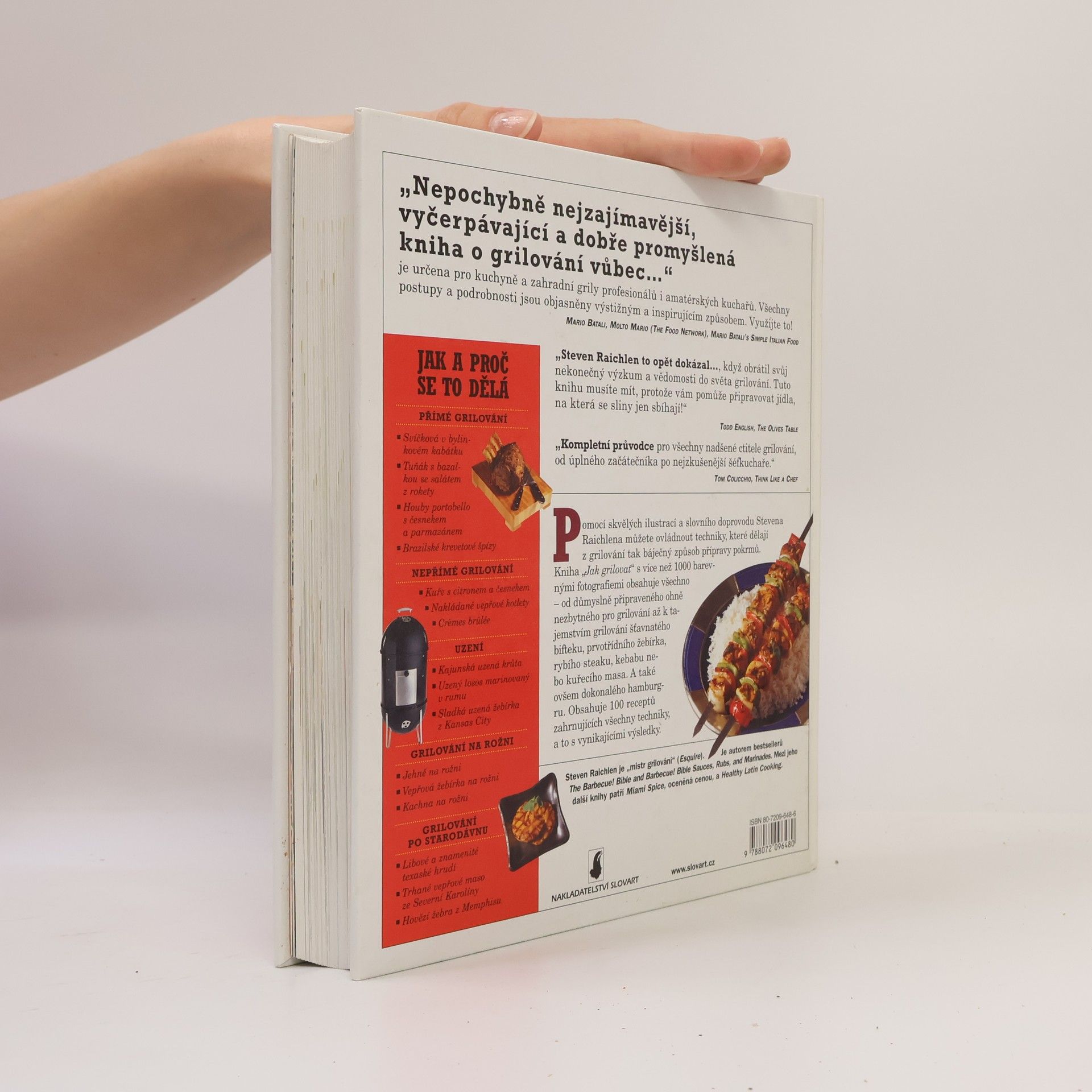 Velká ilustrovaná kniha o technikách barbecue. Kniha pomůže řešit otázky, se kterými jste se jistě setkali při grilování, ale nevěděli jste, na koho se obrátit, aby vám poradil. Povede vás na každém kroku pečením na otevřeném ohni: od výběru a koupi grilu až po bezpečné zapálení ohně a jeho používání na přímé a nepřímé grilování a uzení. Přehled základních jídel a jejich úprav, které by měl každý umět na grilu připravit; perfektní kuřecí prsa; ryby, které se nelepí na mřížku grilu; jemné šťavnaté kotlety i náročnější jídla, která z vás udělají hvězdu pikniku a rožni.