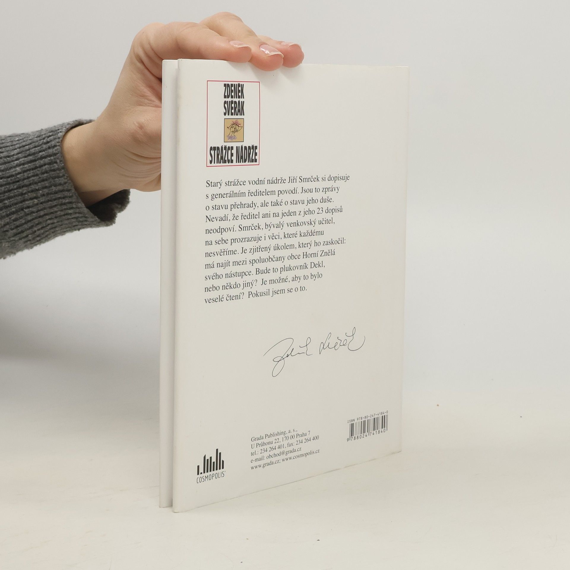 Starý strážce vodní nádrže Jiří Smrček si dopisuje s generálním ředitelem povodí. Jsou to zprávy o stavu přehrady, ale také o stavu jeho duše. Nevadí, že ředitel ani na jeden z jeho 23 dopisů neodpoví. Smrček, bývalý venkovský učitel, na sebe prozrazuje i věci, které každému nesvěříme. Je zjitřený úkolem, který ho zaskočil: má najít mezi spoluobčany obce Horní Znělá svého nástupce. Bude to plukovník Dekl, nebo někdo jiný? Je možné, aby to bylo veselé čtení? Pokusil jsem se o to. Z. Svěrák k novým textům dodává: „Celý život nosím u sebe notýsek, kam si zapisuji nejrůznější krátké poznámky o tom, co mi přijde zajímavé, co jsem viděl, prožil nebo co mi někdo vyprávěl. Nedávno jsem si řekl, že bych se na to měl zpětně podívat a události si připomenout, případně se z těch poznámek inspirovat. Když jsem je začal pročítat, tak jsem zjistil, že téměř 90 % je nepoužitelných, no a z toho zbytku je tato nová kniha.“