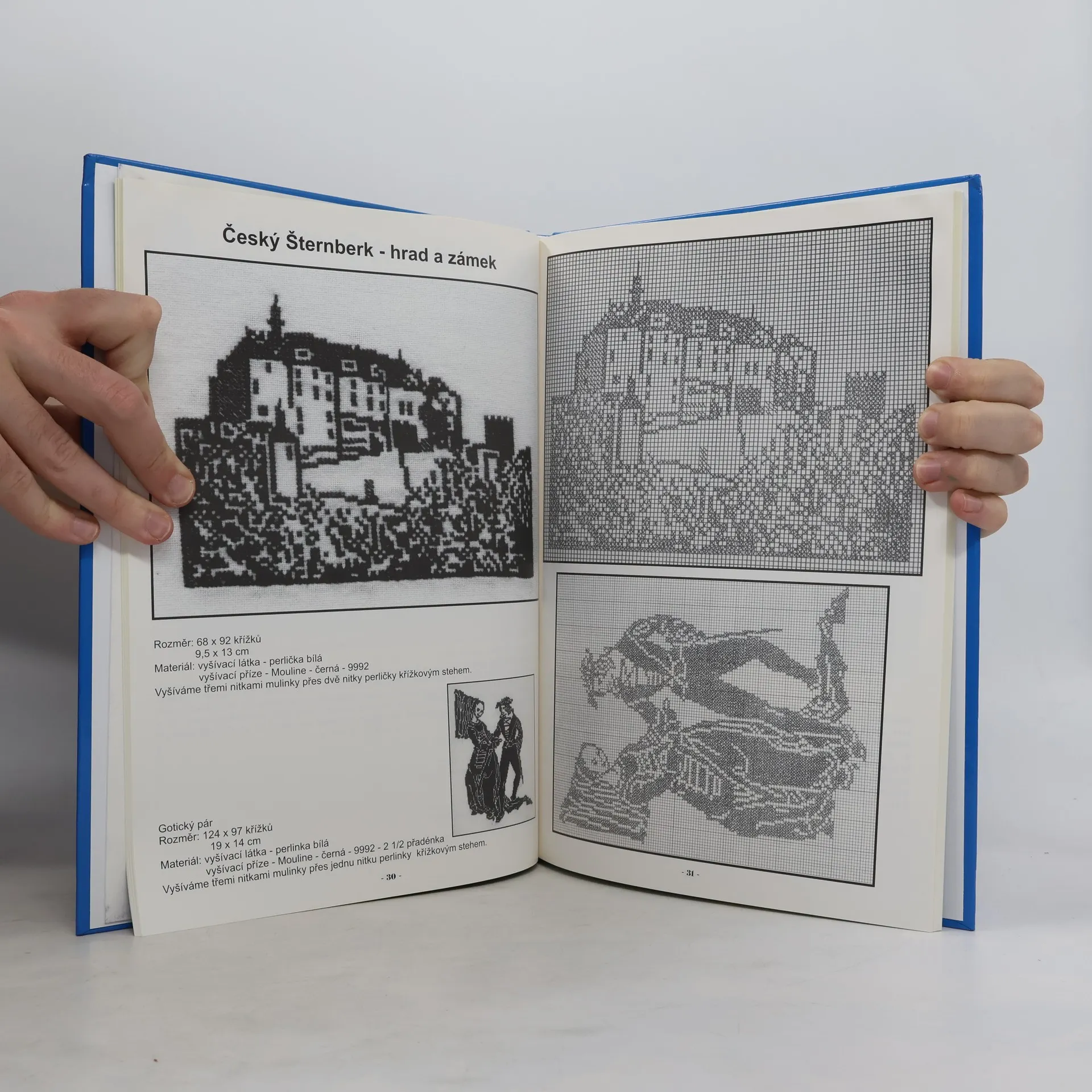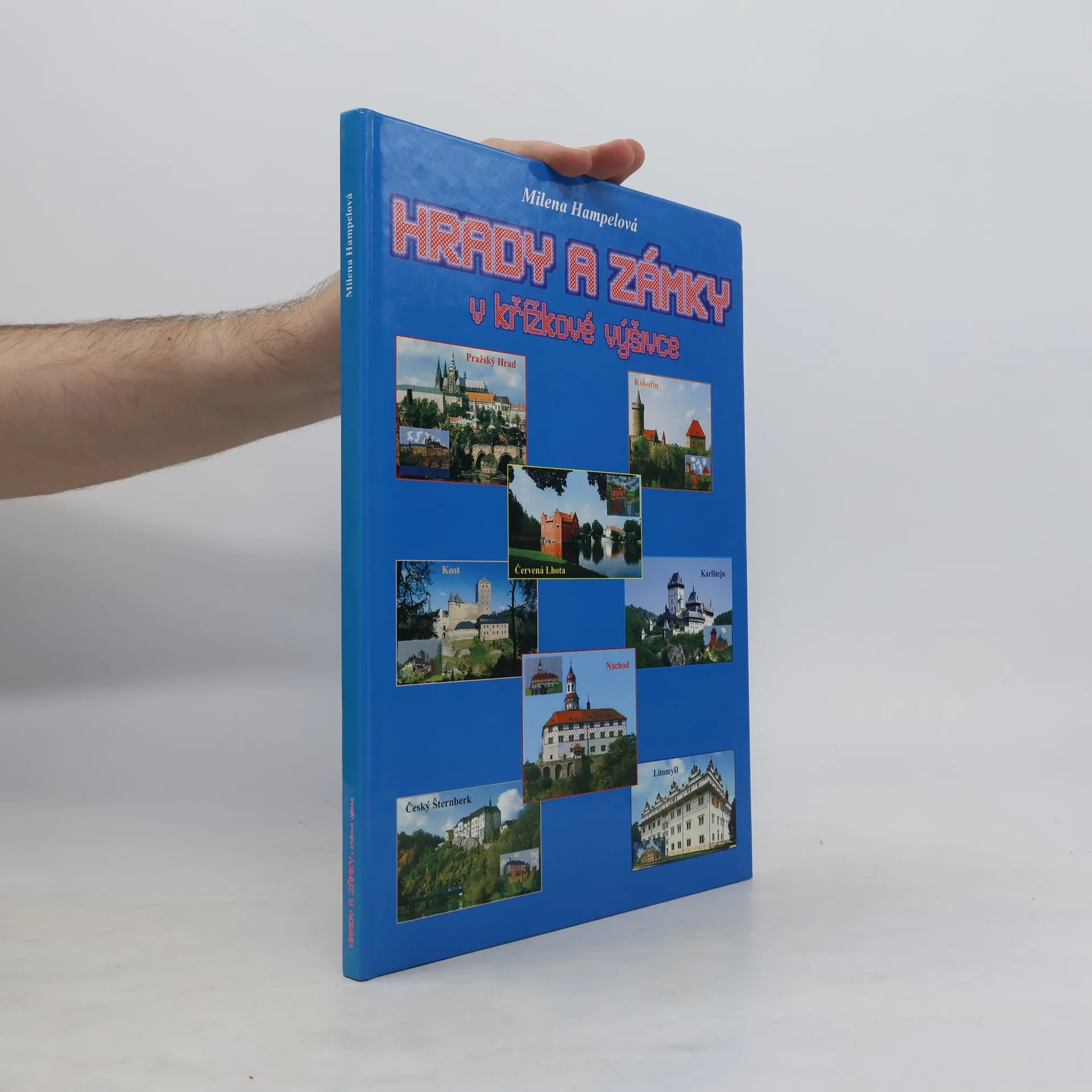 Kniha plná černobílých i barevných návodů a rozkresů křížkovou technikou vyšívaných českých hradů a zámků. Ke každé památce je přidáno pár informací. Kniha obsahuje i černobílé rozkresy na dobové postavičky : dámy, rytíři, dívky ...