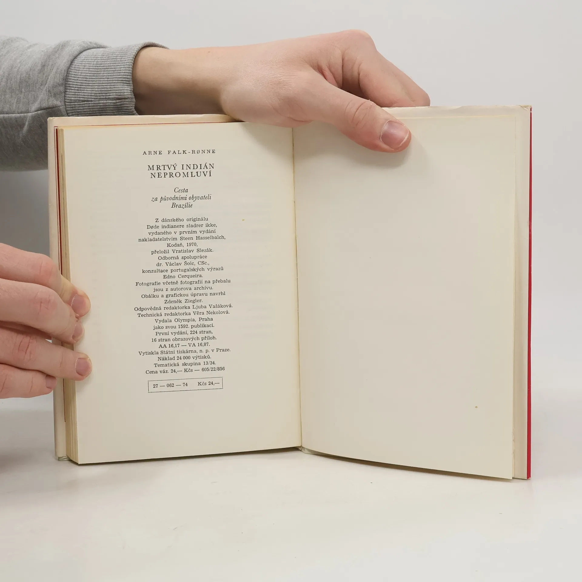 Podnázev: Cesta za původními obyvateli Brazílie.Kniha představuje světu nemilosrdné vybíjení primitivních obyvatel indiánského původu. Cestopisné reportáže dánského novináře a filmaře z málo probádaných oblastí jihoamerického vnitrozemí, kde žije původní indiánské obyvatelstvo, jsou otřesným svědectvím o masovém vyvražďování indiánských kmenů, které „překážejí“ exploataci přírodního bohatství. Možnost záchrany vidí autor v civilizování Indiánů, z nichž mnozí dodnes žijí na úrovni mladší doby kamenné, v jejich zrovnoprávnění a začlenění do pracovního procesu.Doslov k čes. vyd. Václav Šolc; fot. autor.