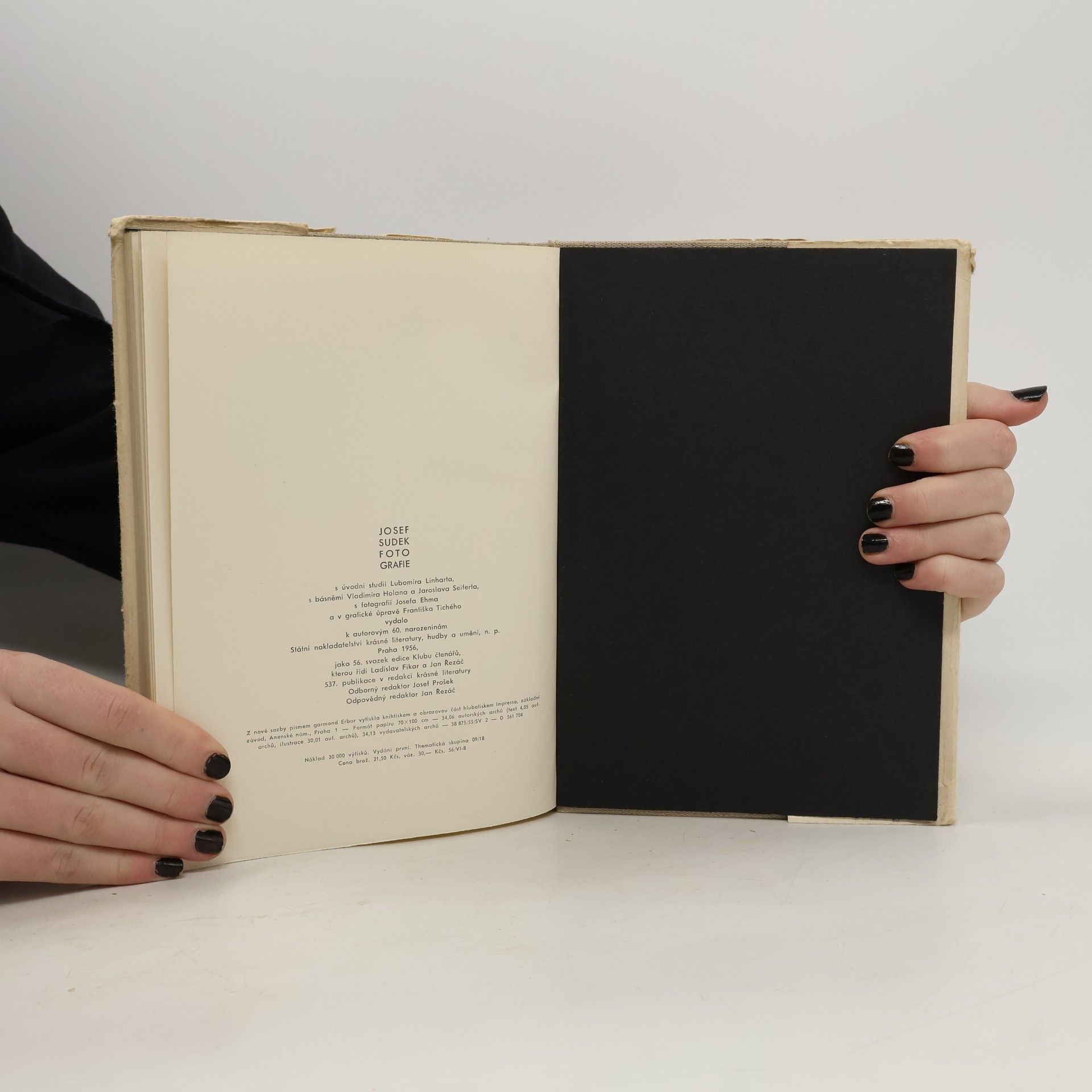 Umělecké fotografie J. Sudka - monografie. S úvodní studií Lubomíra LINHARTA, s básněmi Vladimíra HOLANA a Jaroslava SEIFERTA, s fotografií Josefa EHMA a v grafické úpravě Františka Tichého.
