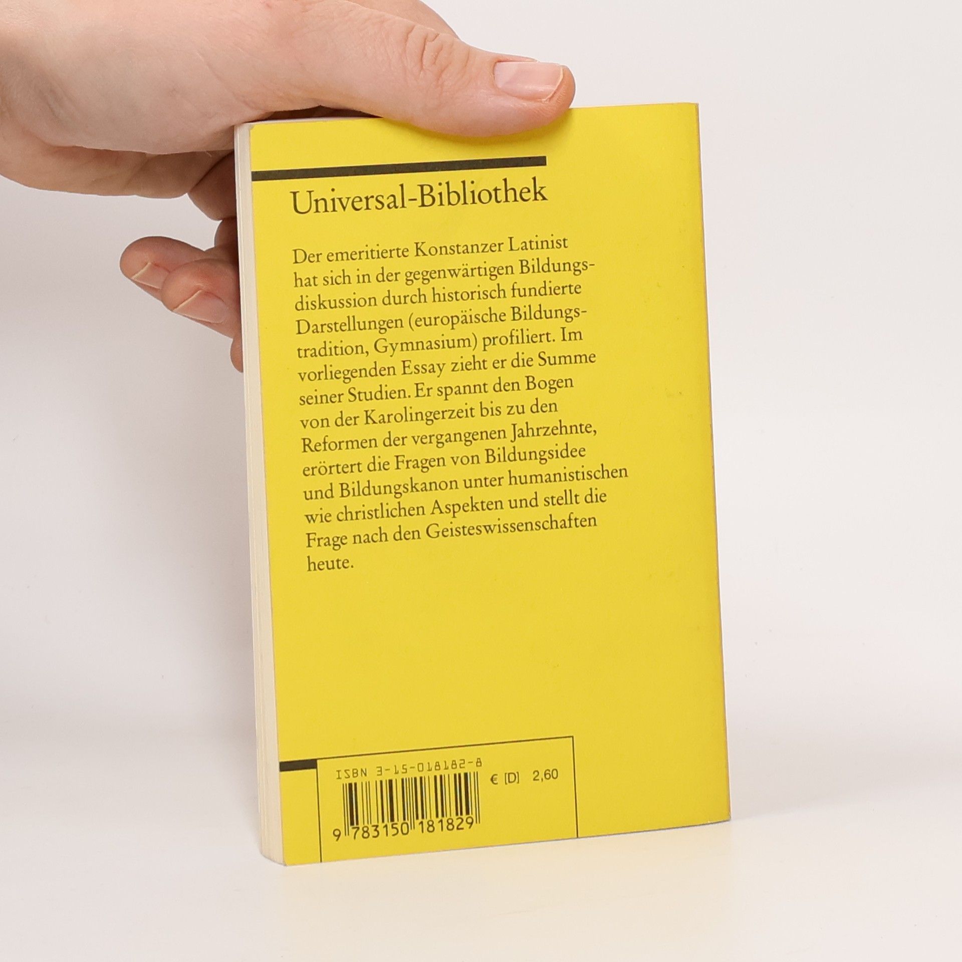 Die Bildungsdiskussion ist in vollem Gange: Der emeritierte Konstanzer Latinist legt dafür ein historisches Fundament und skizziert die Geschichte der Bildung von der Karolingerzeit bis zu den Reformen der vergangenen Jahrzehnte. Seine anschließende Auseinandersetzung mit aktuellen Bildungskonzeptionen zeigt: der humanistische und christliche Kanon kann und muss hier auch weiterhin eine tragende Rolle spielen.