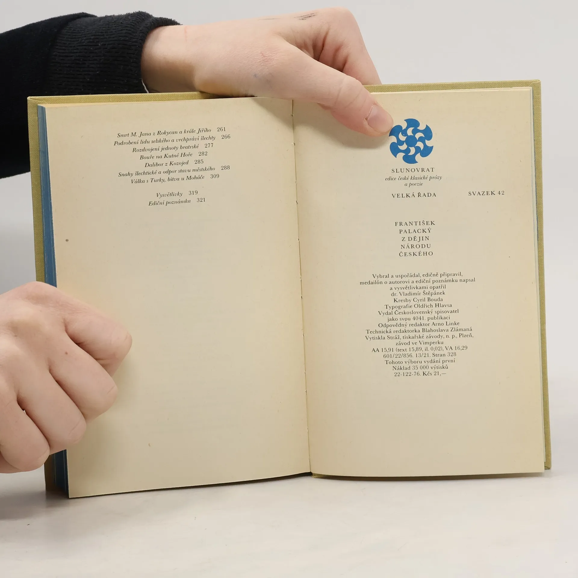 Výběr z hlavních kapitol Palackého Dějin národu českého. Výbor byl pořízen podle komentovaného vydání, jež vyšlo v Odeonu v letech 1968-1973. V hlavních rysech oživuje představy o české národní minulosti, klasicky formulované Palackým, a současně přibližuje průkopnické vědecké dílo výrazných slovesných kvalit, které nepůsobilo jen v odborné oblasti, ale mělo i široký dopad buditelský a politický. Vybral, uspořádal, edičně připravil, medailón o autorovi a ediční poznámku napsal a vysvětlivkami opatřil Vladimír Štěpánek. 1. vydání tohoto výboru.