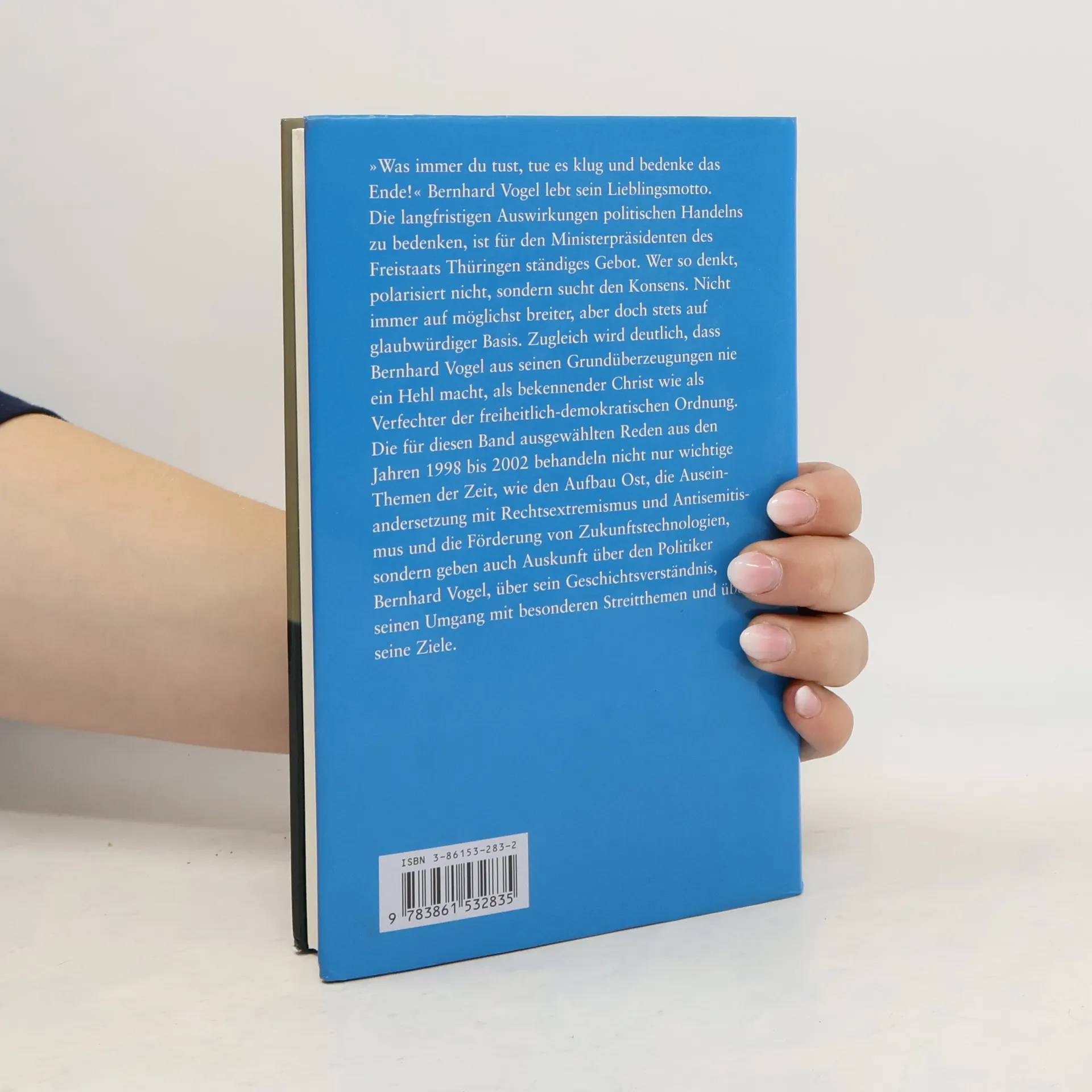*Weitere Angaben Inhalt: "Was immer du tust, tue es klug und bedenke das Ende!" Bernhard Vogel lebt sein Lieblingsmotto. Die langfristigen Auswirkungen politischen Handelns zu bedenken, ist für den Ministerpräsidenten des Freistaats Thüringen ständiges Gebot. Wer so denkt, polarisiert nicht, sondern sucht den Konsens. Nicht immer auf möglichst breiter, aber doch stets auf glaubwürdiger Basis. Zugleich wird deutlich, daß Bernhard Vogel aus seinen Grundüberzeugungen nie ein Hehl macht, als bekennender Christ wie als Verfechter der freiheitlich-demokratischen Ordnung. Die für diesen Band ausgewählten Reden aus den Jahren 1998-2002 behandeln nicht nur wichtige Themen der Zeit, wie den Aufbau Ost, die Auseinandersetzung mit Rechtsextremismus und Antisemitismus und die Förderung von Zukunftstechnologien, sondern geben auch Auskunft über den Politiker Bernhard Vogel, über sein Geschichtsverständnis, seinen Umgang mit besonderen Streitthemen und über seine Ziele.