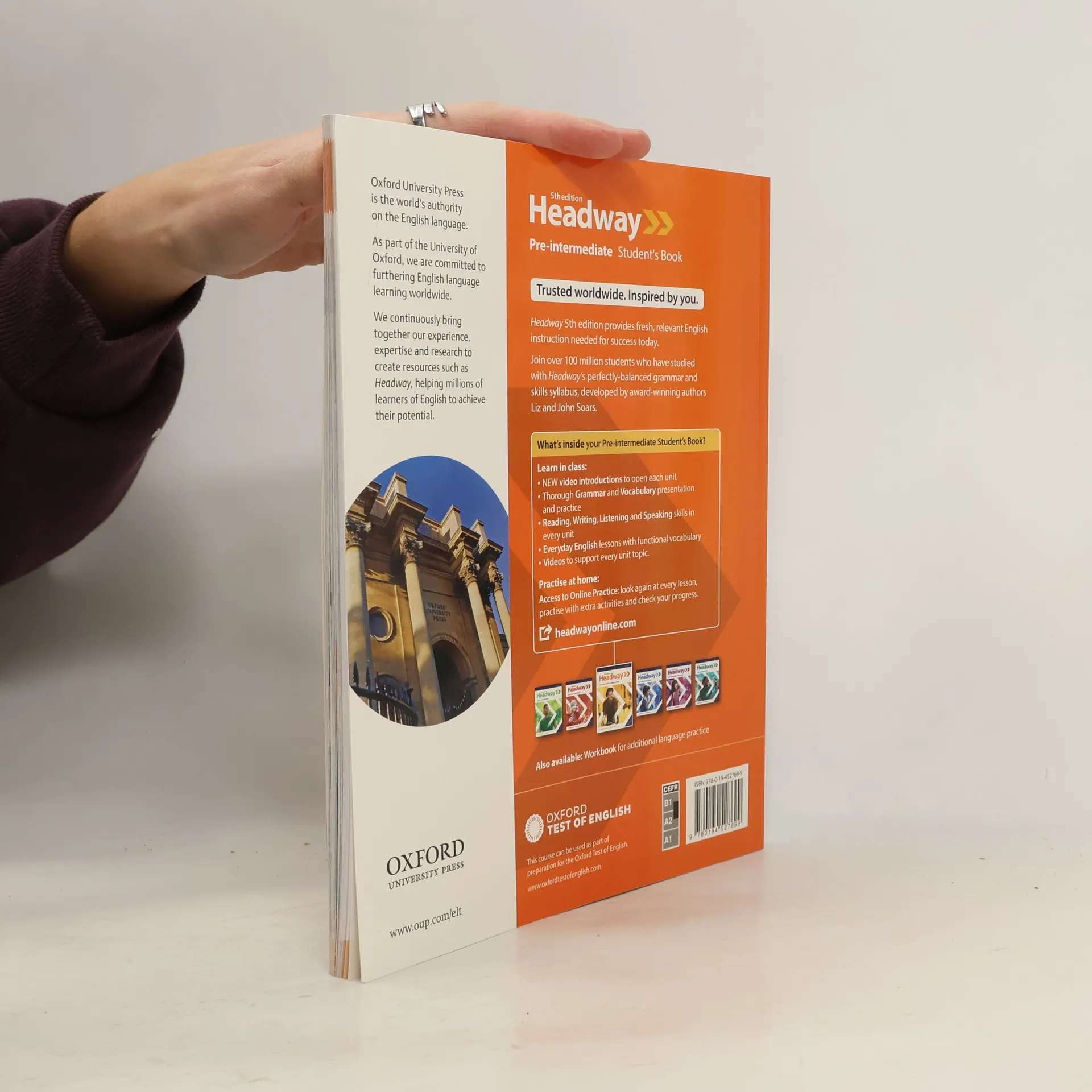 Each Student's Book provides 14 topical units with familiar Headway structure and integrated skills methodology. New vibrant photography unit openers use questions to engage learners with the unit topic and video introductions provide overviews of the content included. New and updated reading texts focus on topics and themes that students can relate to and demonstrate a specific language point.