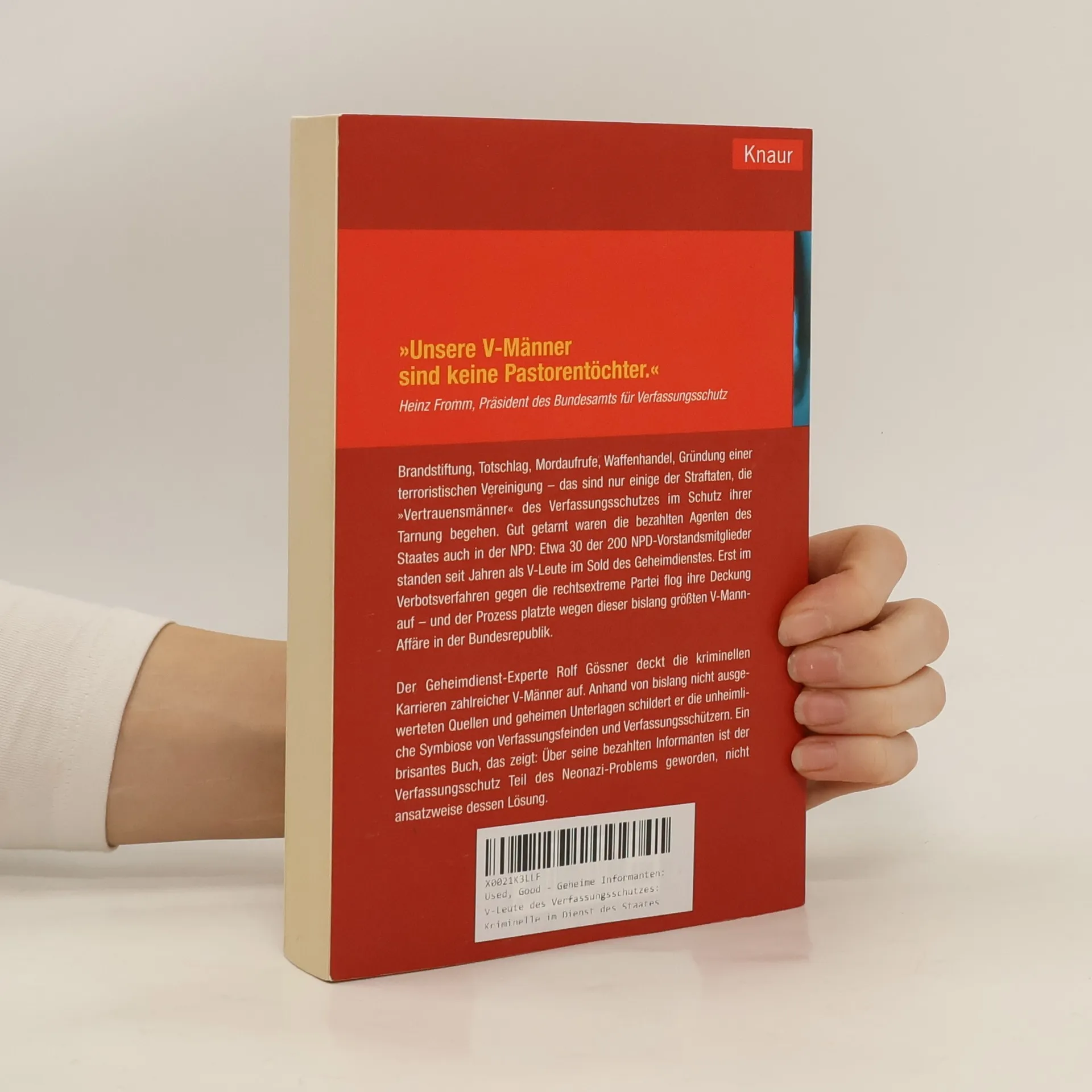 Zuletzt wusste keiner mehr, wer in der NPD das Sagen hatte, nicht einmal der Verfassungsschutz. Die rechtsextreme Partei war auf der Führungsebene von zahlreichen V-Männern unterwandert - und keiner wusste vom anderen. Im März 2003 hat das Bundesverfassungsgericht das Verbotsverfahren gegen die NPD wegen dieser bislang größten V-Mann-Affäre in der bundesdeutschen Geschichte eingestellt. Der Geheimdienstexperte Rolf Gössner schildert anhand einer Vielzahl von Fällen und Fakten die unheimliche Symbiose von Verfassungsfeinden und Verfassungsschützern. Sein Fazit: Über seine bezahlten Agenten ist der Verfassungsschutz Teil des Neonazi-Problems geworden, nicht ansatzweise dessen Lösung.