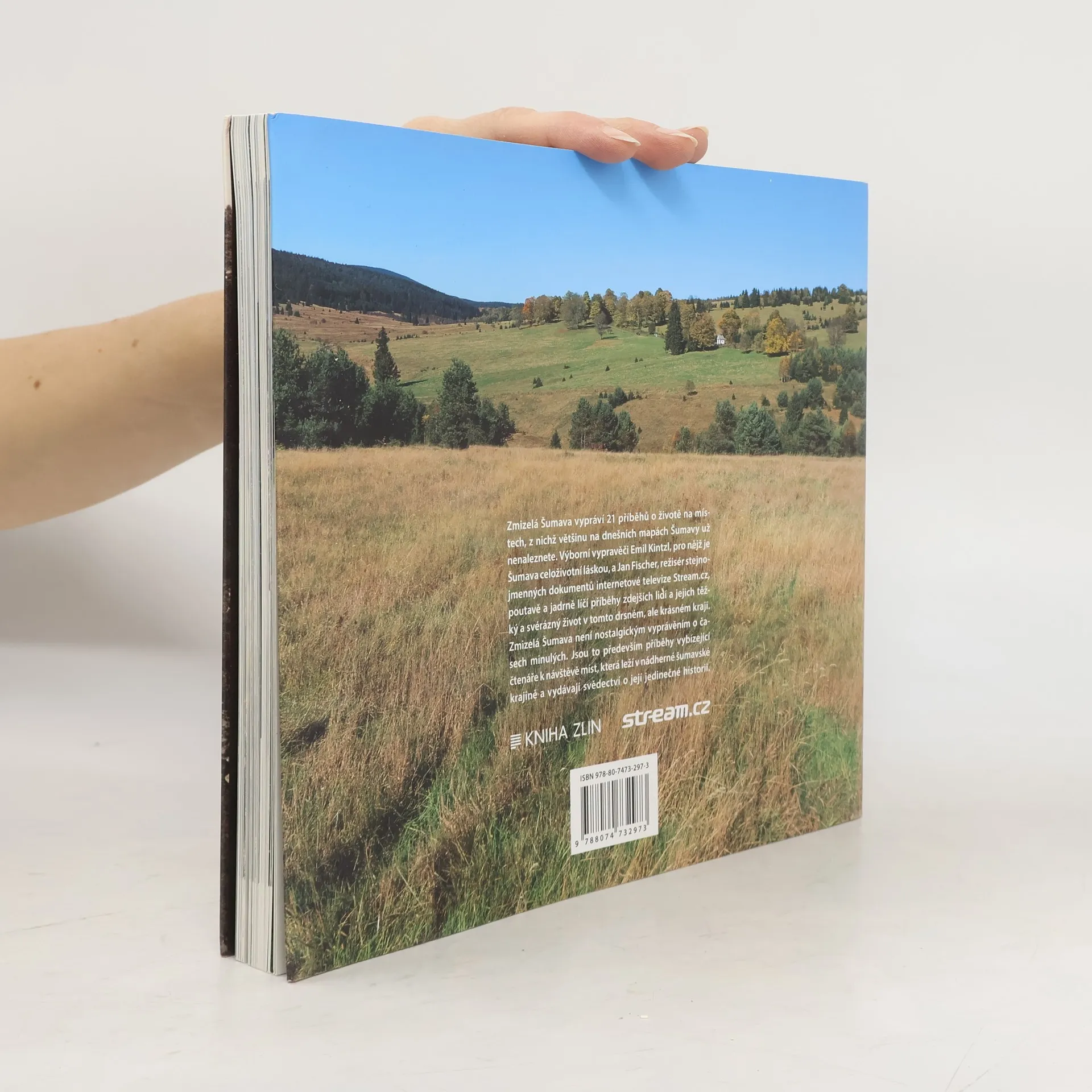 Kniha Zmizelá Šumava vypráví 21 příběhů o životě a místech, která na dnešních mapách Šumavy už nenaleznete. Do osudů obyvatel na pomezí českoněmecké hranice totiž nemilosrdně zasáhly „velké“ dějiny 20. století, nejprve obě světové války, poté odsun německých obyvatel, neprodyšné uzavření hranice a vytvoření vojenského výcvikového prostoru Dobrá voda, kterému musely ustoupit nuceně vysídlené obce i osady. Výborní vypravěči Emil Kintzl, pro nějž je Šumava celoživotní láskou, a Jan Fischer, režisér stejnojmenných dokumentů internetové televize Stream.cz, poutavě a jadrně líčí těžký a svérázný život horalů na samotách a v chudých osadách, popisují činorodý život lidí ve větších obcích a v neposlední řadě připomínají bohatou průmyslovou a kulturní historii tohoto regionu. Každý z příběhů doprovází unikátní dobové fotografie z archivu Emila Kintzla. Současnou krajinu a úchvatnou šumavskou přírodu zachycují plnobarevné fotografie Janka Rubeše a Leoše Skokana. Příběhy Zmizelé Šumavy nejsou nostalgickým vyprávěním po časech minulých, ale především vybízí čtenáře k návštěvě míst, která leží v nádherné šumavské krajině a jsou svědky její jedinečné historie.