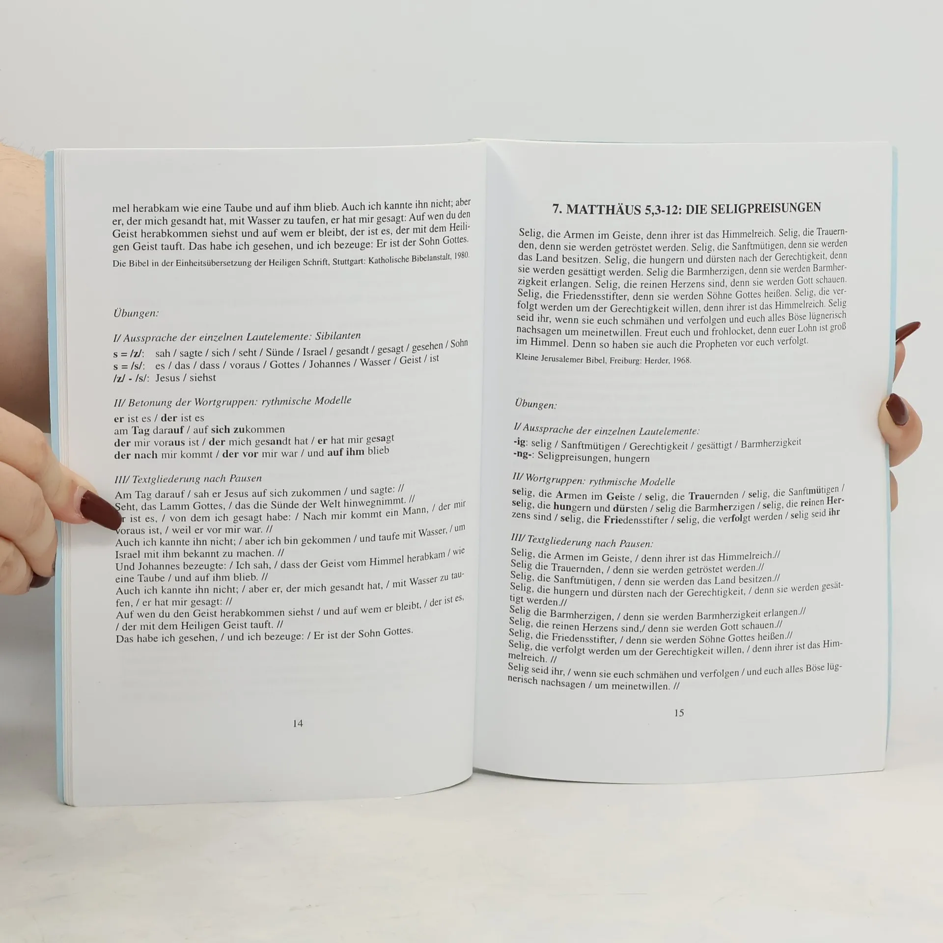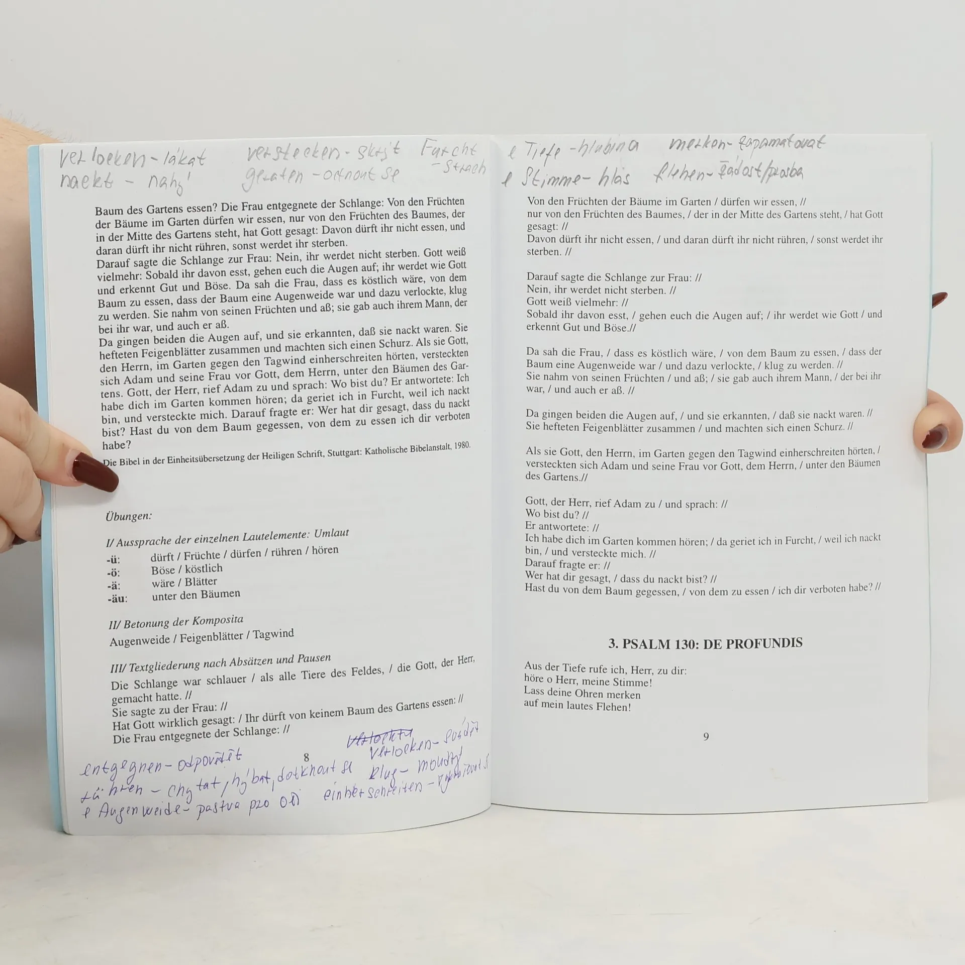 Textová čítanka a cvičebnice slovní zásoby je určena k výuce německého jazyka studentů teologie Katolické teologické Fakulty UK. Obsahuje tématické texty z křesťanského života a odborný česko-německý a německo-český slovník.