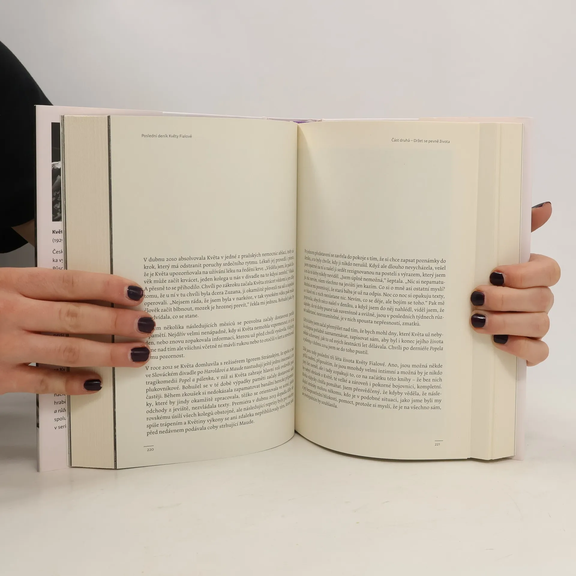 Květa Fialová. Pro některé charismatická dáma se zvláštním tajemstvím v očích, pro jiné jízlivá komentátorka s kousavým humorem, pro další pokorná žena, se kterou se život nemazlil a ona přesto dokázala stárnout s elegancí a noblesou. Co z toho je vlastně pravda? Jaká byla jedna z nejoblíbenějších českých hereček ve skutečnosti? Herec Josef Kubáník prožil v bezprostřední blízkosti Květy Fialové čas od září 2008 až do jejího odchodu o devět let později. Měl možnost poznat ji velmi zblízka, stali se přáteli i zpovědníky. A o tom, co nikomu neřekla, co nosila v sobě až do posledních dnů, ale nechtěla si to s sebou odnést na věčnost, vypráví tato kniha.