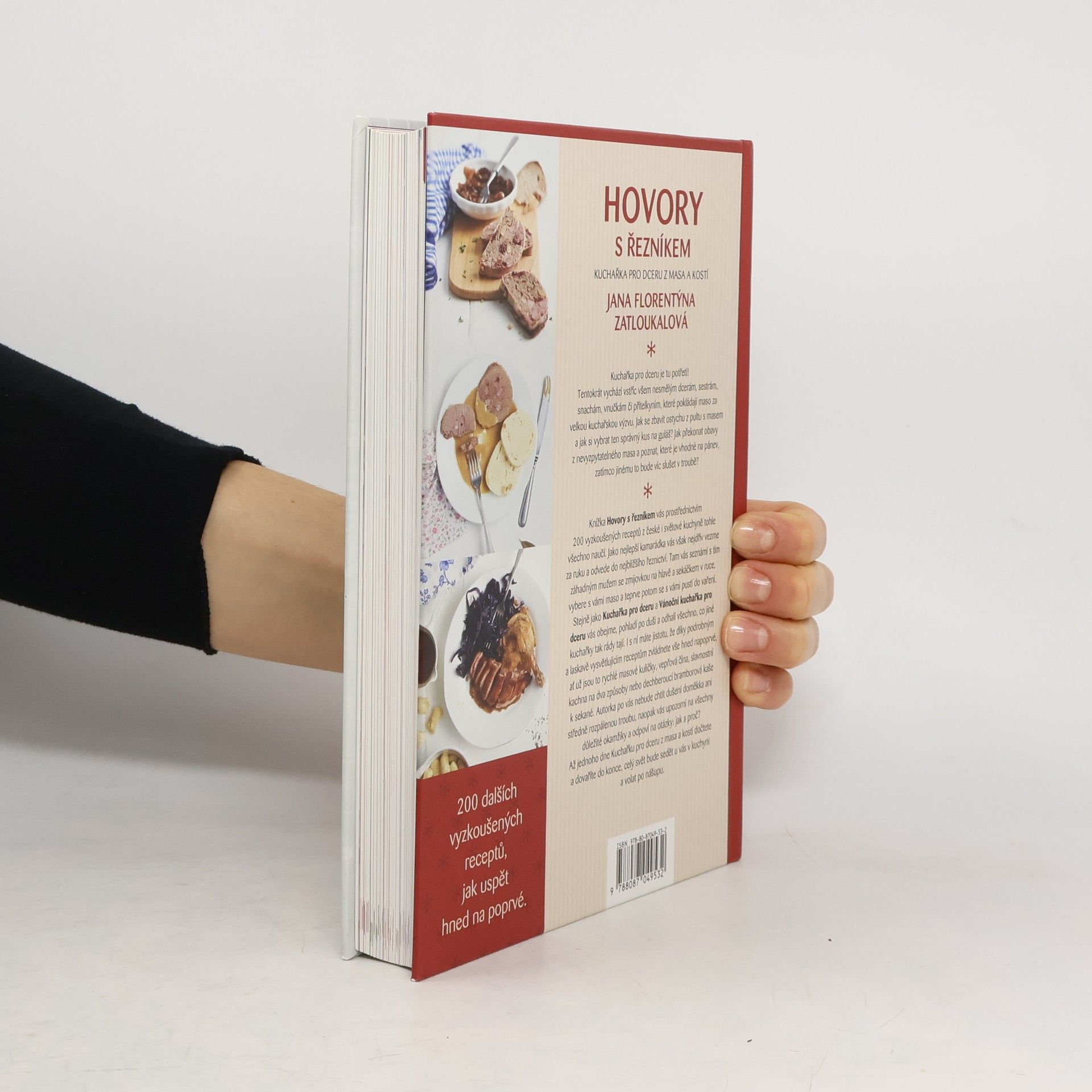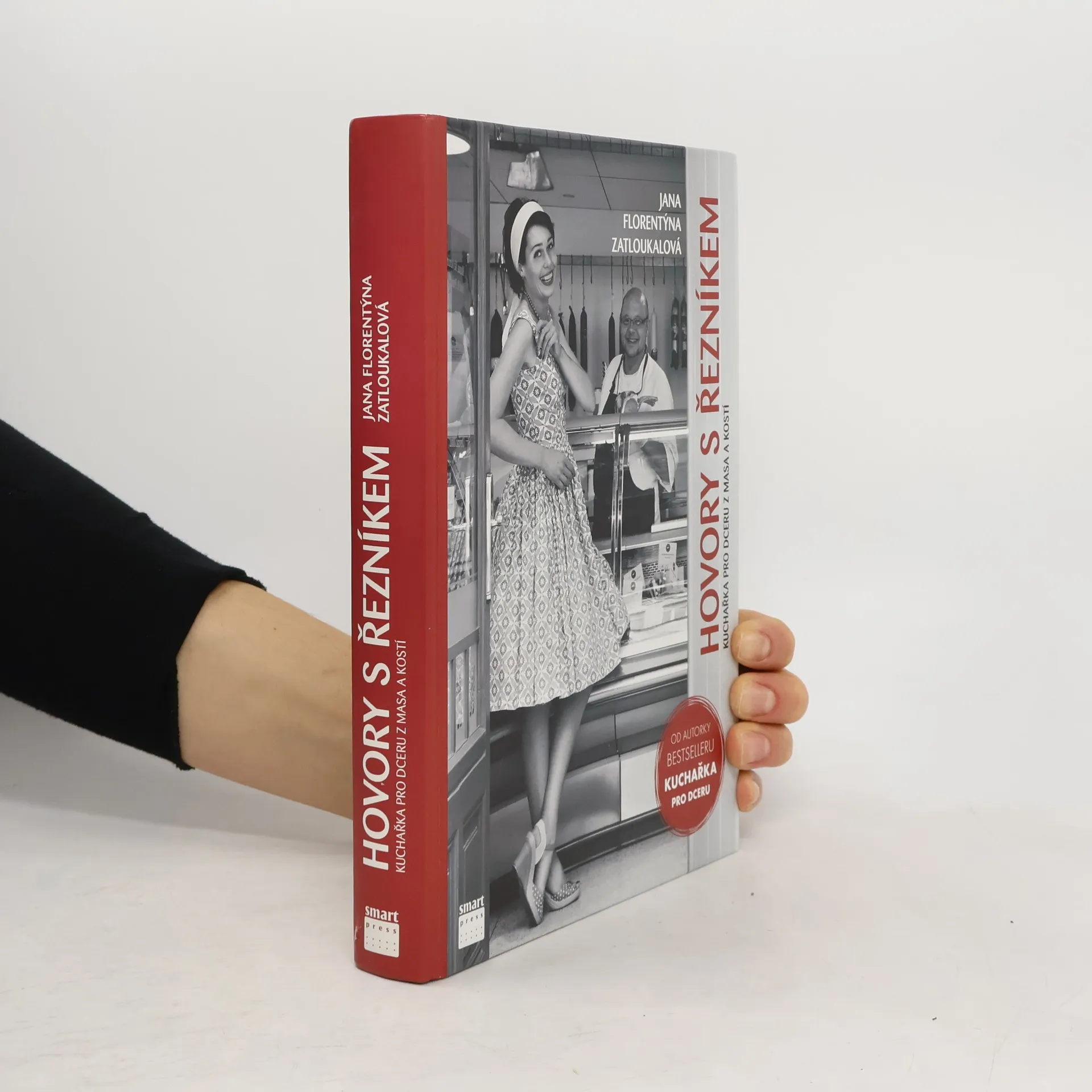 Kuchařka pro dceru je tu potřetí! Tentokrát vychází vstříc všem nesmělým dcerám, sestrám, snachám, vnučkám či přítelkyním, které pokládají maso za velkou kuchařskou výzvu. Jak se zbavit ostychu z pultu s masem a jak si vybrat ten správný kus na guláš? Jak překonat obavy z nevyzpytatelného masa a poznat, které je vhodné na pánev, zatímco jinému to bude víc slušet v troubě? Knížka Hovory s řezníkem vás prostřednictvím 200 vyzkoušených receptů z české i světové kuchyně tohle všechno naučí. Jako nejlepší kamarádka vás však nejdřív vezme za ruku a odvede do nejbližšího řeznictví. Tam vás seznámí s tím záhadným mužem se zmijovkou na hlavě a sekáčkem v ruce, vybere s vámi maso a teprve potom se s vámi pustí do vaření. Stejně jako Kuchařka pro dceru a Vánoční kuchařka pro dceru vás obejme, pohladí po duši a odhalí všechno, co jiné kuchařky tak rády tají. I s ní máte jistotu, že díky podrobným, laskavým a vysvětlujícím receptům zvládnete vše hned napoprvé, ať už jsou to rychlé masové kuličky, vepřová čína, slavnostní kachna na dva způsoby nebo dech beroucí bramborová kaše k sekané. Autorka po vás nebude chtít dušení doměkka ani středně rozpálenou troubu, naopak vás upozorní na všechny důležité okamžiky a odpoví na otázky: jak a proč? A až jednoho dne Kuchařku pro dceru z masa a kostí dočtete a dovaříte až do konce, celý svět bude sedět u vás v kuchyni a volat po nášupu. První dotisk 2013.