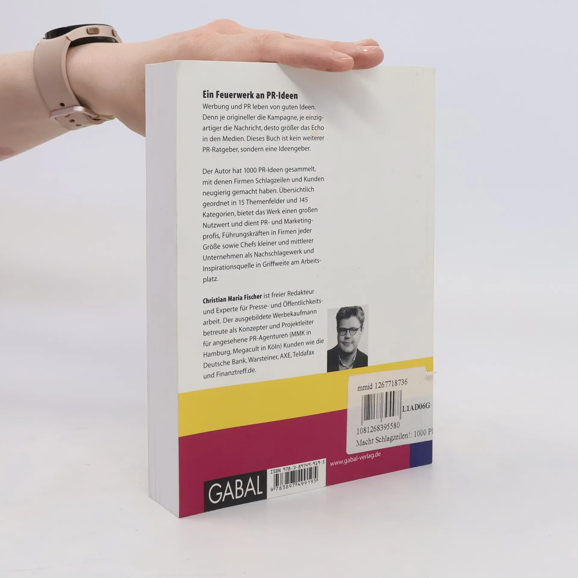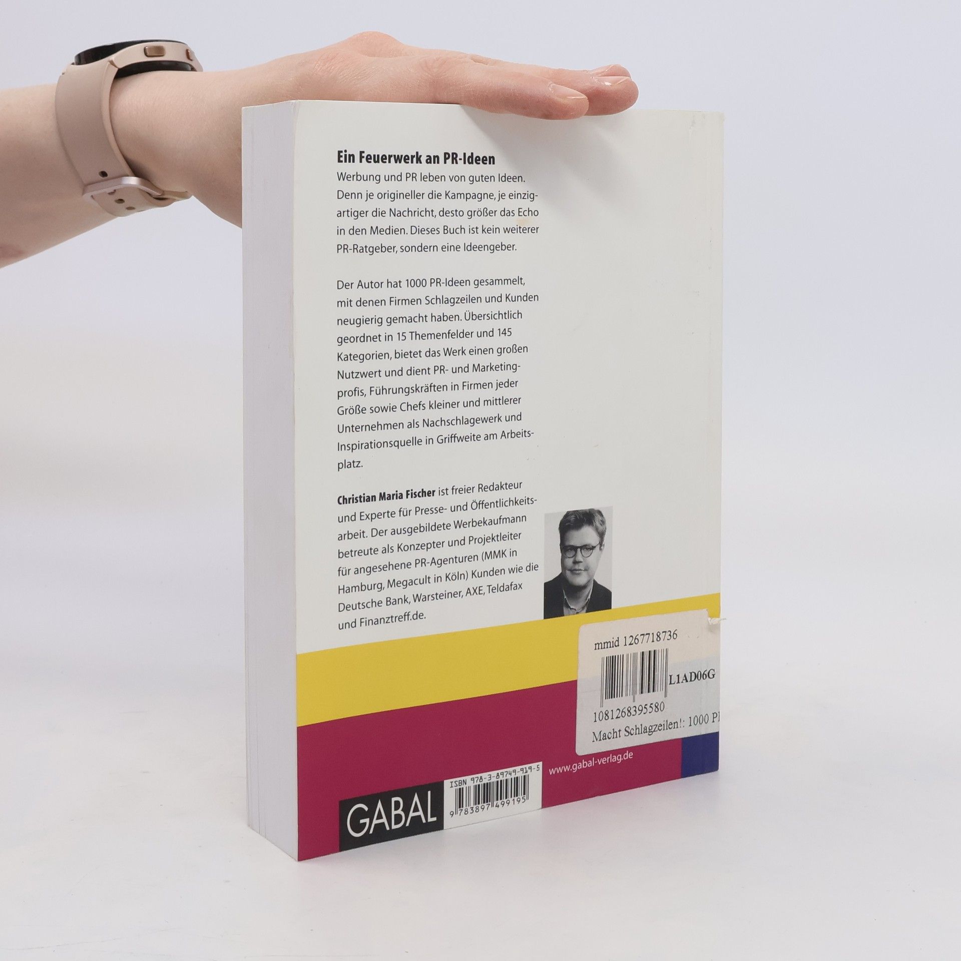 Dieses Buch ist kein weiterer PR-Ratgeber, sondern ein Ideengeber. Der Autor hat 1000 PR-Ideen gesammelt, mit denen Firmen Schlagzeilen und Kunden neugierig gemacht haben. Er ordnet das Ideenfeuerwerk in 160 Themenfeldern unter 13 Kategorien und macht sie so gezielt nachschlagbar. Werbung wie PR lebt von guten Ideen, hier liegt der Engpass. Denn je origineller die Kampagne, je einzigartiger die Nachricht, desto größer das Echo in den Medien. Das Werk bietet einen großen Nutzenwert und dient PR- und Marketingprofis und Führungskräften in Firmen jeder Größe sowie Chefs kleiner und mittlerer Unternehmen als Nachschlagewerk und Inspirationsquelle unmittelbar in Griffweite am Arbeitsplatz.