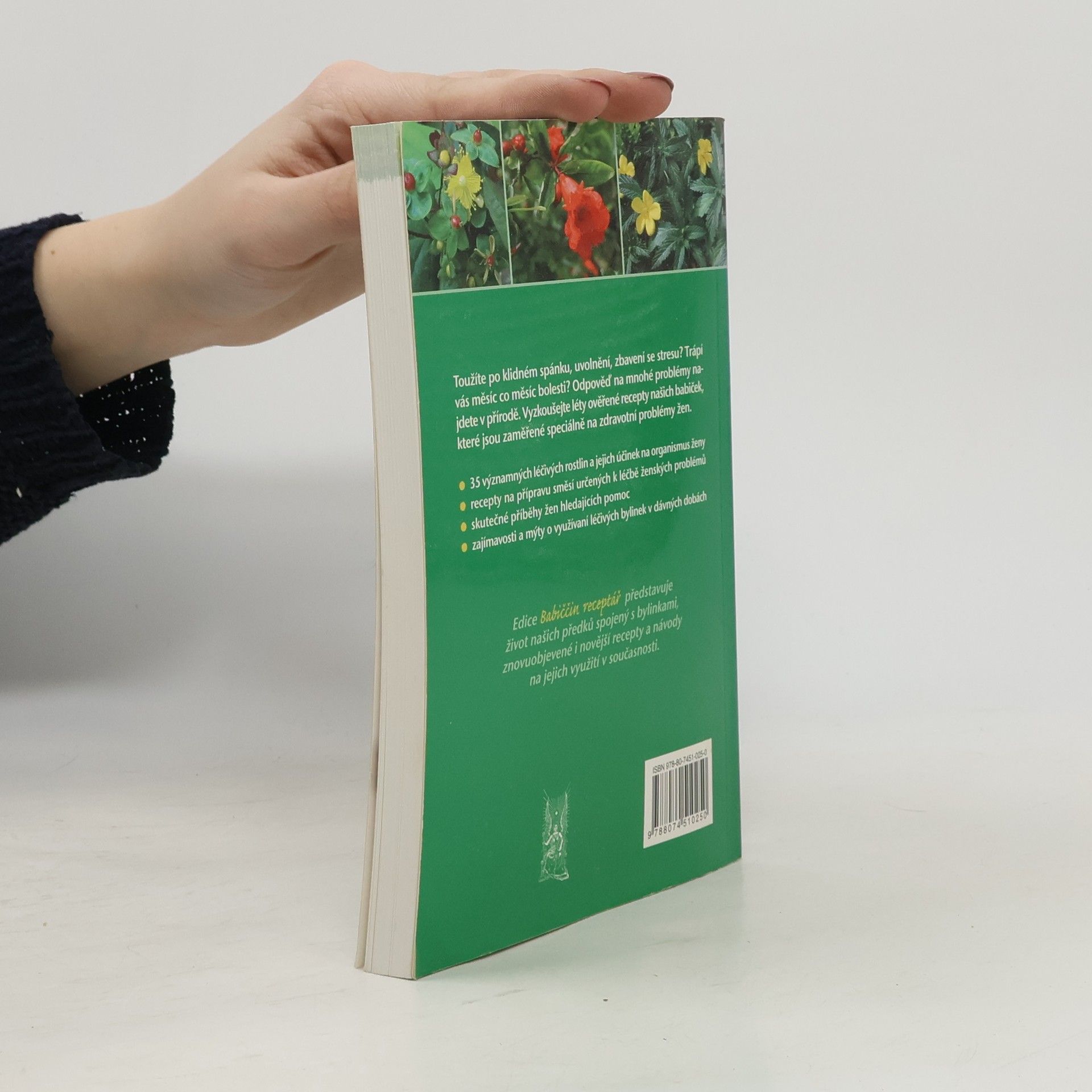 Kniha patří do edice Babiččin receptář. Tato edice představuje život našich předků spojený s bylinkami, znovuobjevené i novější recepty a návody na jejich využití v současnosti. Toužíte po klidném spánku, uvolnění, zbavení se stresu? Trápí vás měsíc co měsíc bolesti? Odpověď na mnohé problémy najdete v přírodě. Vyzkoušejte léty ověřené recepty našich babiček, které jsou zaměřené spiciálně na zdravotní problémy žen. Kniha obsahuje: 35 významných léčivých rostlin a jejich účinek na organismus ženy. Recepty na přípravu směsí určených k léčbě ženských problémů. Skutečné příběhy žen hledajících pomoc. Zajímavosti a mýty o využívání léčivých bylinek v dávných dobách.