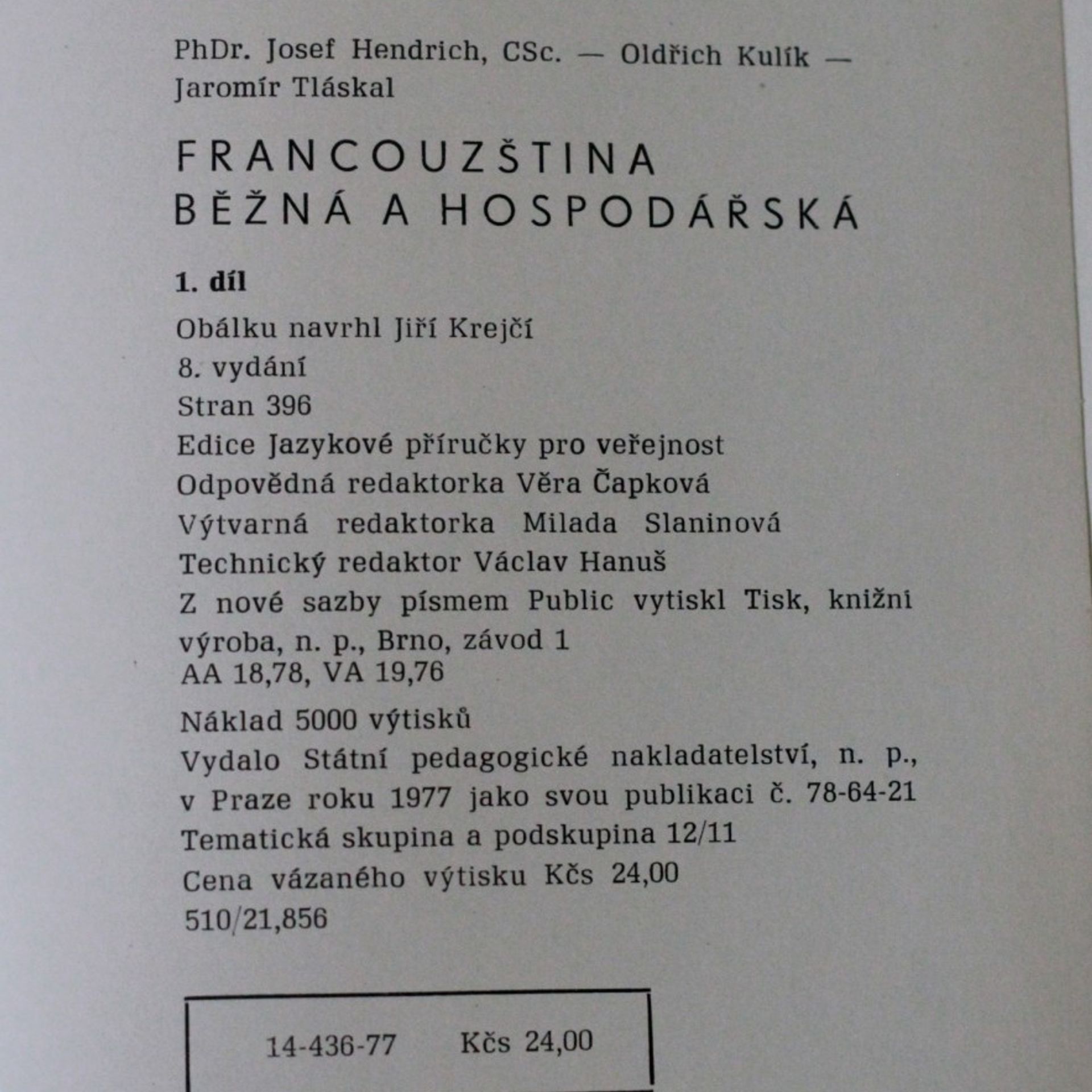 Francouzšina běžná a hospodářská, Josef Hendrich, Oldřich Kulík, Jaromír Tláskal