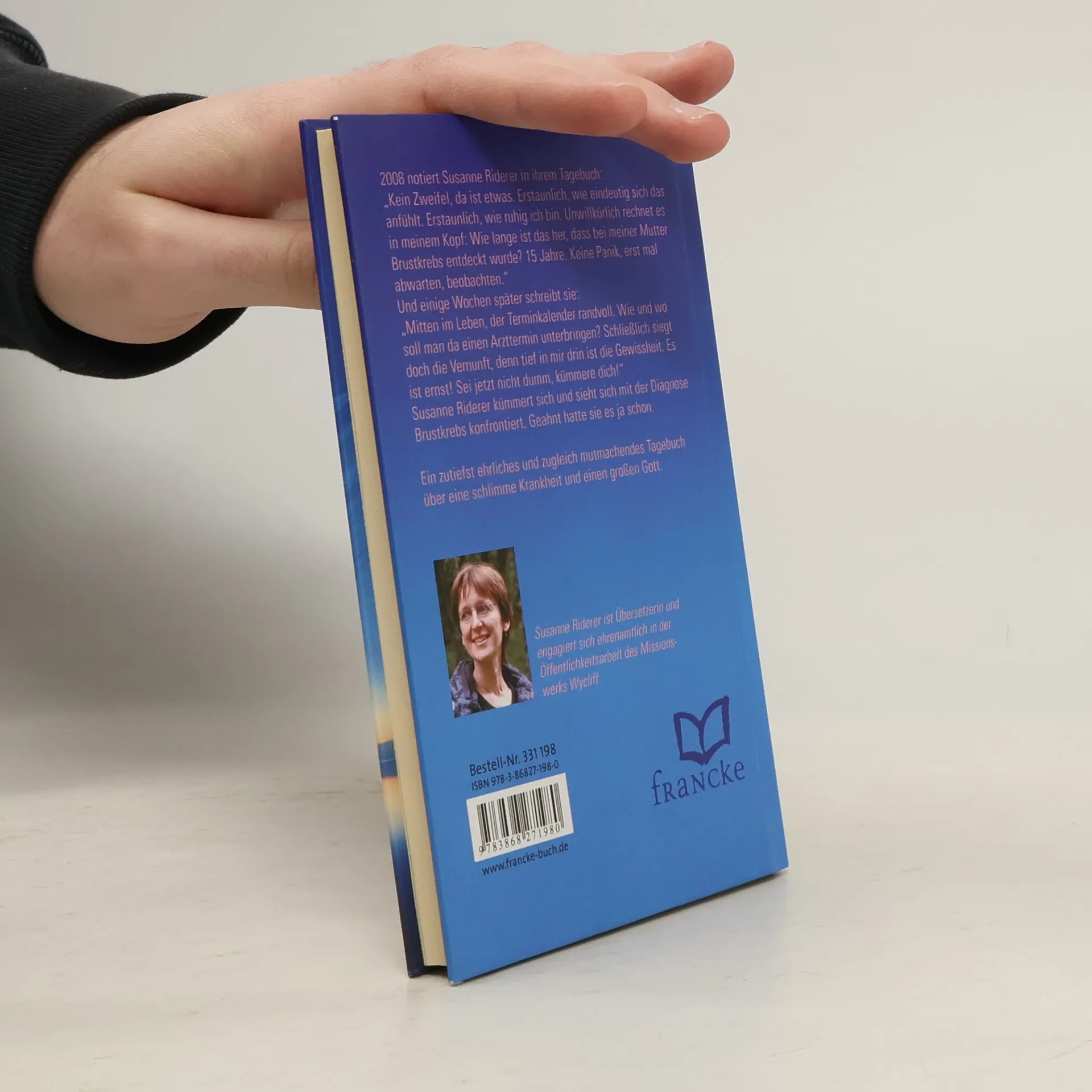 2008 notiert Susanne Riderer in ihrem Tagebuch: „Kein Zweifel, da ist etwas. Erstaunlich, wie eindeutig sich das anfühlt. Erstaunlich, wie ruhig ich bin. Unwillkürlich rechnet es in meinem Kopf: Wie lange ist das her, dass bei meiner Mutter Brustkrebs entdeckt wurde? 15 Jahre. Keine Panik, erst mal abwarten, beobachten.“ Und einige Wochen später schreibt sie: „Mitten im Leben, der Terminkalender randvoll. Wie und wo soll man da einen Arzttermin unterbringen? Schließlich siegt doch die Vernunft, denn tief in mir drin ist die Gewissheit: Es ist ernst! Sei jetzt nicht dumm, kümmere dich!“ Susanne Riderer kümmert sich und sieht sich mit der Diagnose Brustkrebs konfrontiert. Geahnt hatte sie es ja schon. Ein zutiefst ehrliches und zugleich mutmachendes Tagebuch über eine schlimme Krankheit und einen großen Gott.
