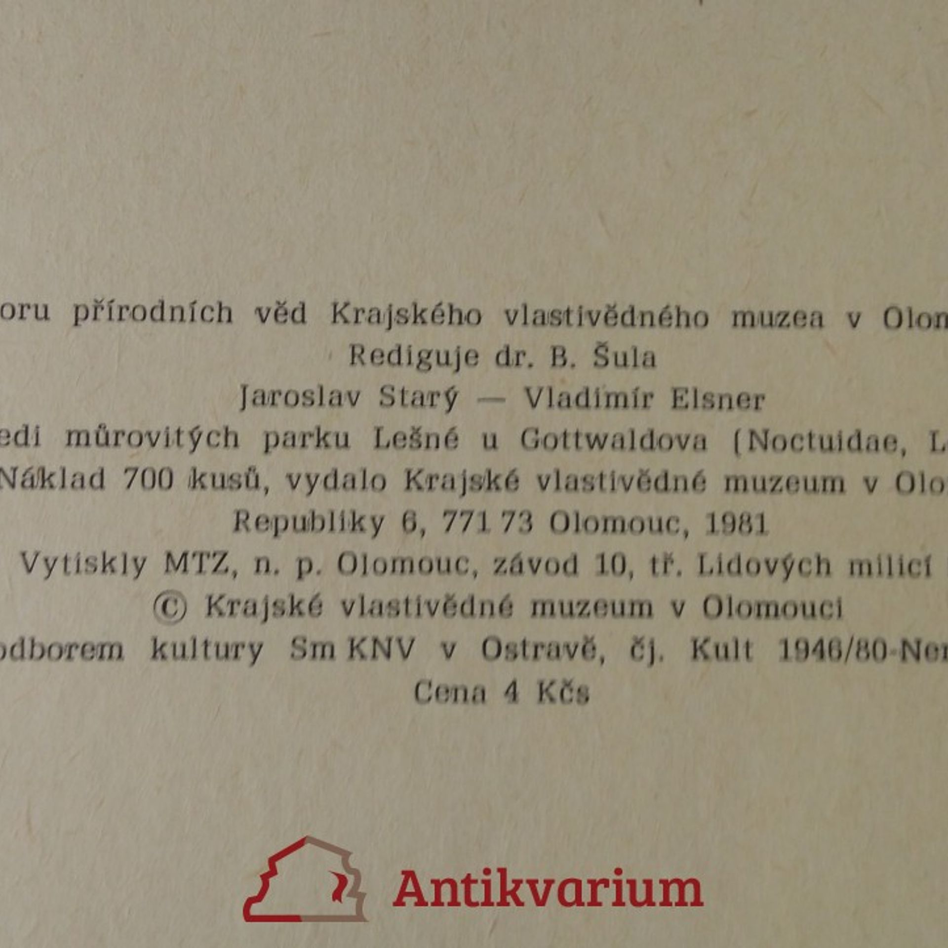 Fauna čeledi můrovitých parku Lešné u Gottwaldova ( Noctuidae, Lepidoptera), Jaroslav Starý, Vladimír Elsner