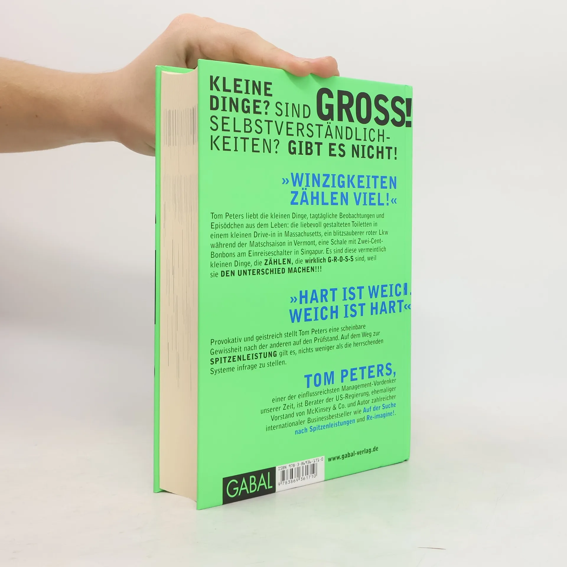 Spitzenleistung ist kein Ziel, sie ist die Art, wie wir leben. Tom Peters liebt die kleinen Dinge, tägliche Beobachtungen und Episödchen aus dem Leben. Kleine Dinge, hinter denen die großen Dinge hervorscheinen. Selbstverständlichkeiten, die keine sind. Ein schmuddeliger und unaufgeräumter Laden, der den Kunden mitteilt: „Ist mir doch egal“. Eine vor Sauberkeit funkelnde Imbisstoilette, die besagt: »Wir kümmern uns.« Dieses neueste Werk von Tom Peters ist ein Feuerwerk aus Ideen, Tipps und Handlungsanleitungen. Der Leser profitiert von der niedrigen Unzufriedenheitsschwelle des Autors. Genervte Menschen sind für ihn die allerbeste Innovationsquelle, die wir haben. Wer sich mit Mittelmaß begnügt, ist bei Tom Peters an der falschen Adresse. Wer Motivation erwartet ebenso. Wer Erfolg anstrebt, schon dreimal. Wer Spitzenleistung als Lebensphilosophie begreift, liegt mit diesem Buch goldrichtig.