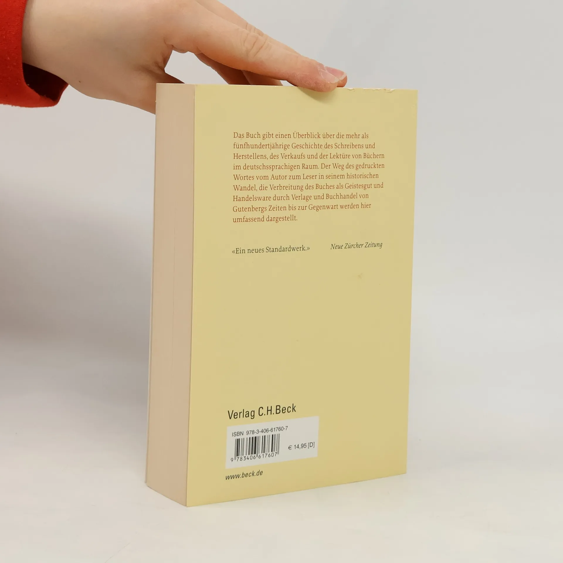 Das Buch gibt einen Überblick über die mehr als fünfhundertjährige Geschichte des Schreibens und Herstellens, des Verkaufs und der Lektüre von Büchern im deutschsprachigen Raum.