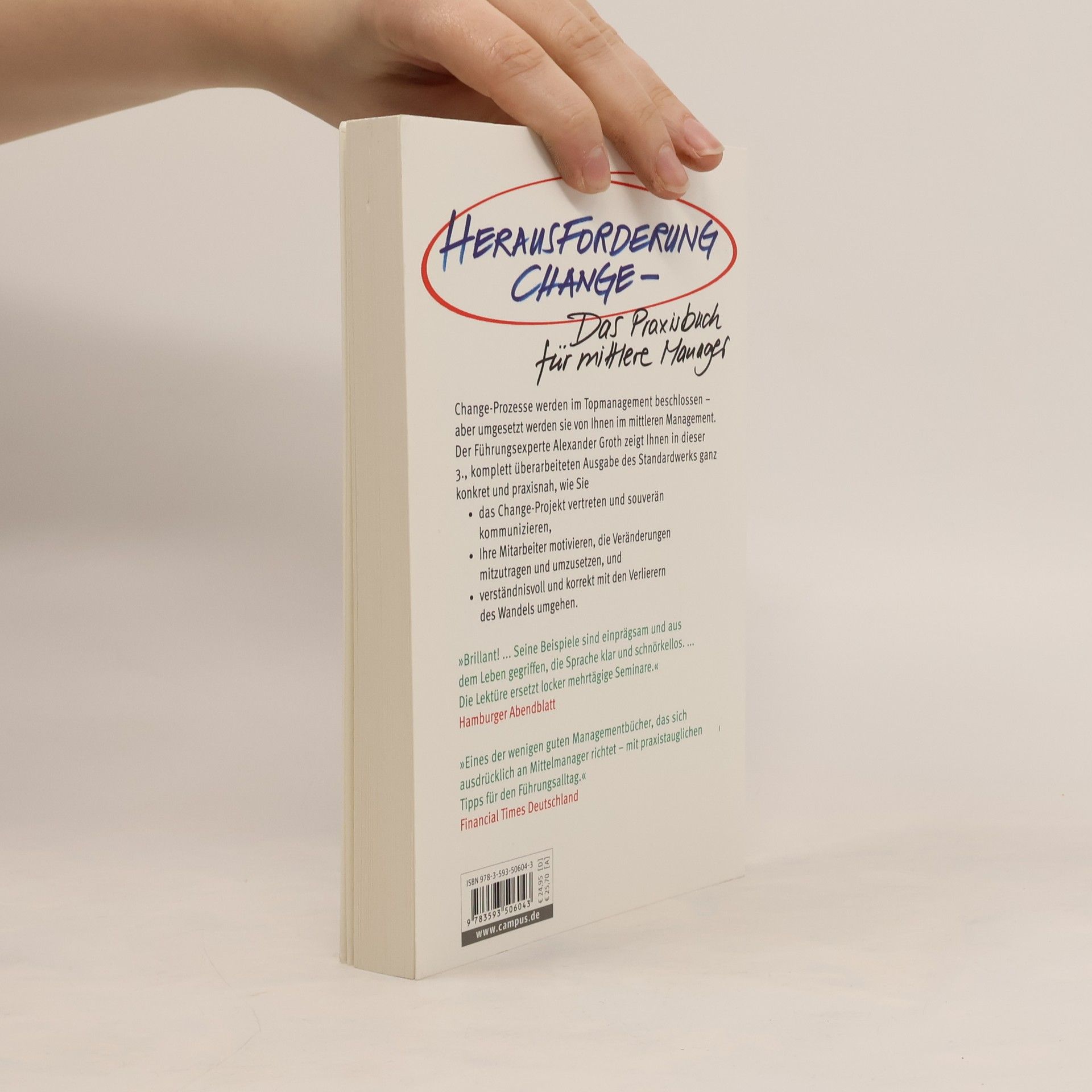 So gelingt der Wandel wirklich! Changeprozesse werden im Topmanagement geboren - aber es sind die mittleren Führungskräfte, die die Maßnahmen zusammen mit den Mitarbeitern umsetzen müssen. Dabei tauchen immer wieder Fragen auf: Wie werden Changeprojekte glaubwürdig vertreten und souverän kommuniziert? Was motiviert Mitarbeiter, die Veränderungen mitzutragen und umzusetzen? Wie geht man verständnisvoll mit den Verlierern des Wandels um? Führungsexperte Alexander Groth trifft die neuralgischen Punkte des Change-Managements und zeigt in dieser komplett überarbeiteten Neuauflage, wie Wandel erfolgreich nach unten umgesetzt werden kann.