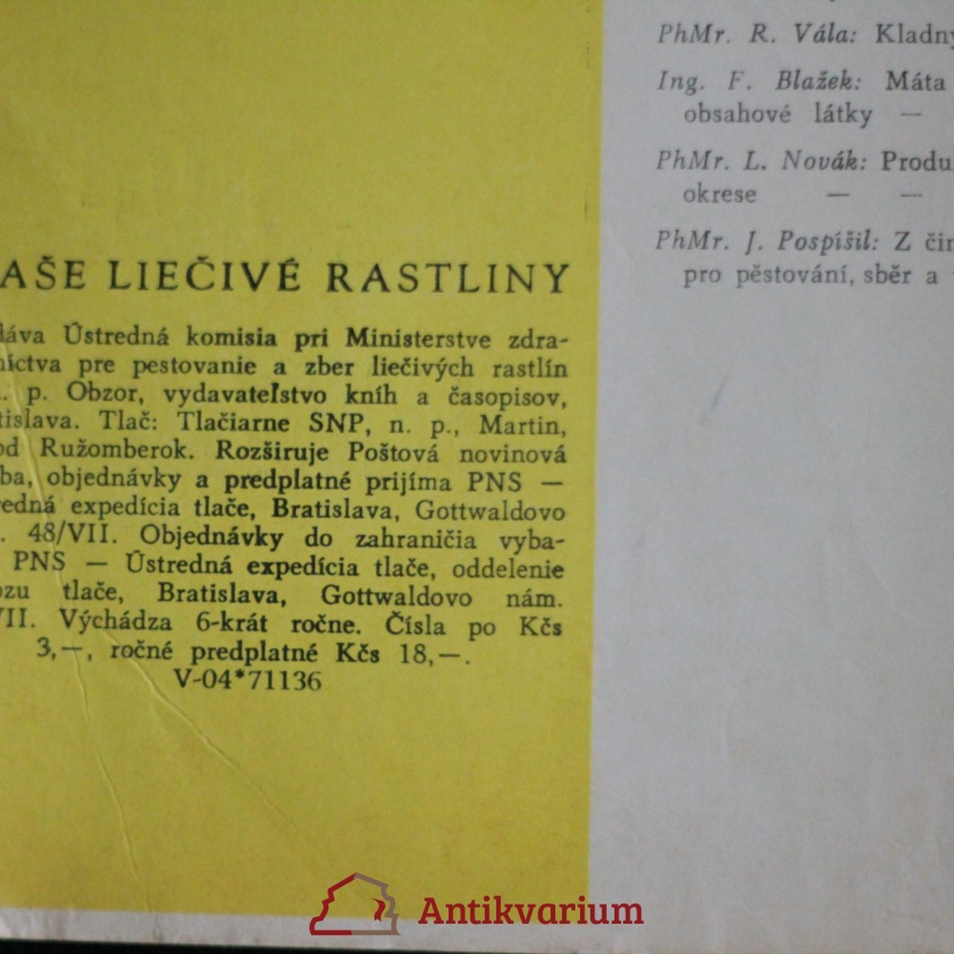 Naše Liečivé rastliny 3/1967, Autorenkollektiv