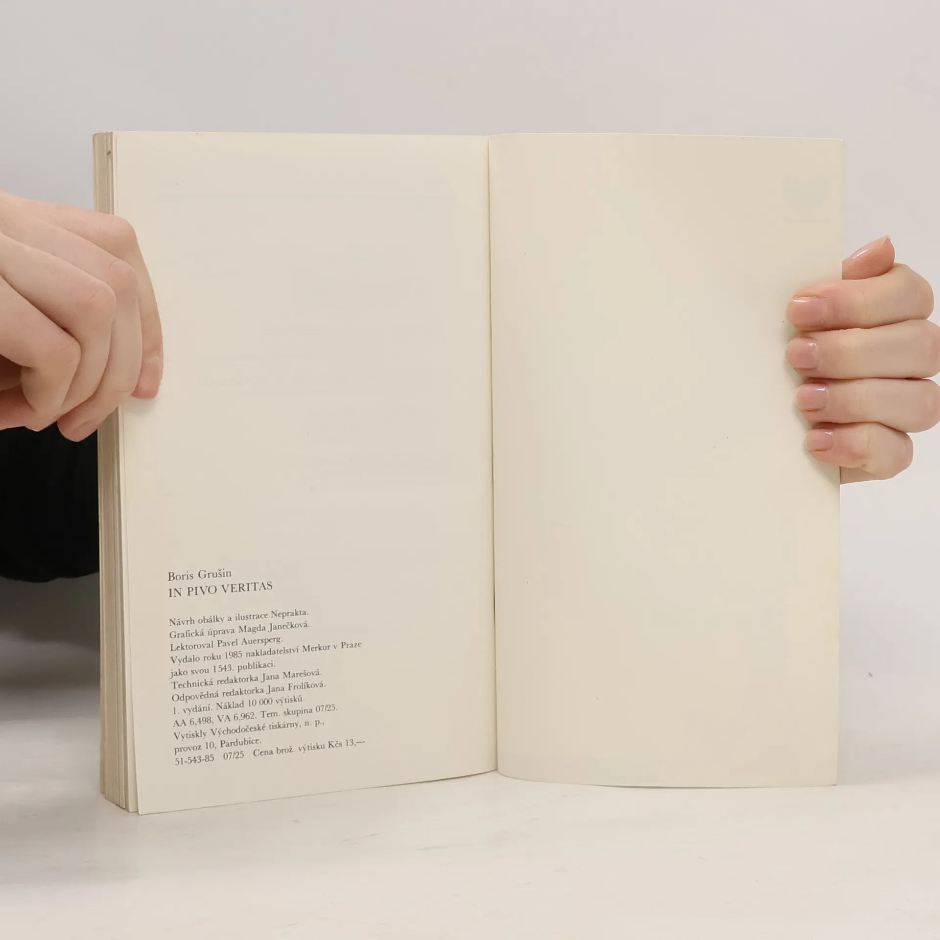 Autor knihy - profesor sociologie Boris Grušin při svém pobytu v Praze v 60. a 70.letech navštívil téměř 800 pražských hospod, a kromě pití piva si zapisoval vtípky, aforismy, básničky ze stěn a výčepů těchto podniků. Svoje zápisky vložil do knihy In pivo veritas.