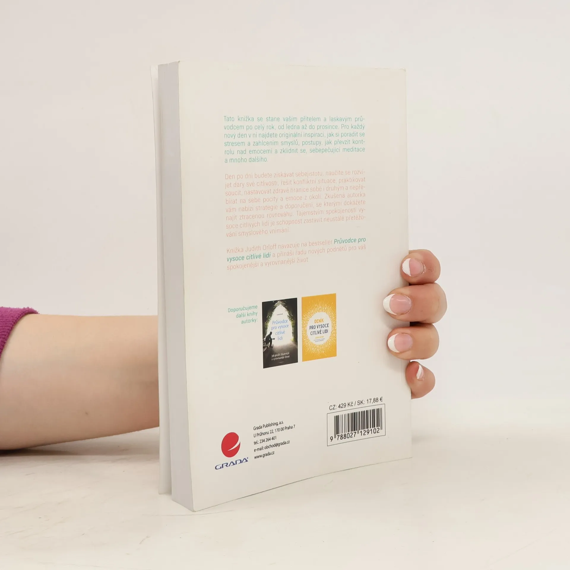 Tato knížka se stane vaším přítelem a laskavým průvodcem po celý rok, od ledna až do prosince. Pro každý nový den v ní najdete originální inspiraci, jak si poradit se stresem a zahlcením smyslů, postupy, jak převzít kontrolu nad emocemi a zklidnit se, sebepečující meditace a mnoho dalšího. Den po dni budete získávat sebejistotu, naučíte se rozvíjet dary své citlivosti, řešit konfliktní situace, praktikovat soucit, nastavovat zdravé hranice sobě i druhým a nepřebírat na sebe pocity a emoce z okolí. Zkušená autorka vám nabízí strategie a doporučení, se kterými dokážete najít ztracenou rovnováhu. Tajemstvím spokojenosti vysoce citlivých lidí je schopnost zastavit neustálé přetěžování smyslového vnímání. Knížka Judith Orloff navazuje na bestseller Průvodce pro vysoce citlivé lidi a přináší řadu nových podnětů pro váš spokojenější a vyrovnanější život.