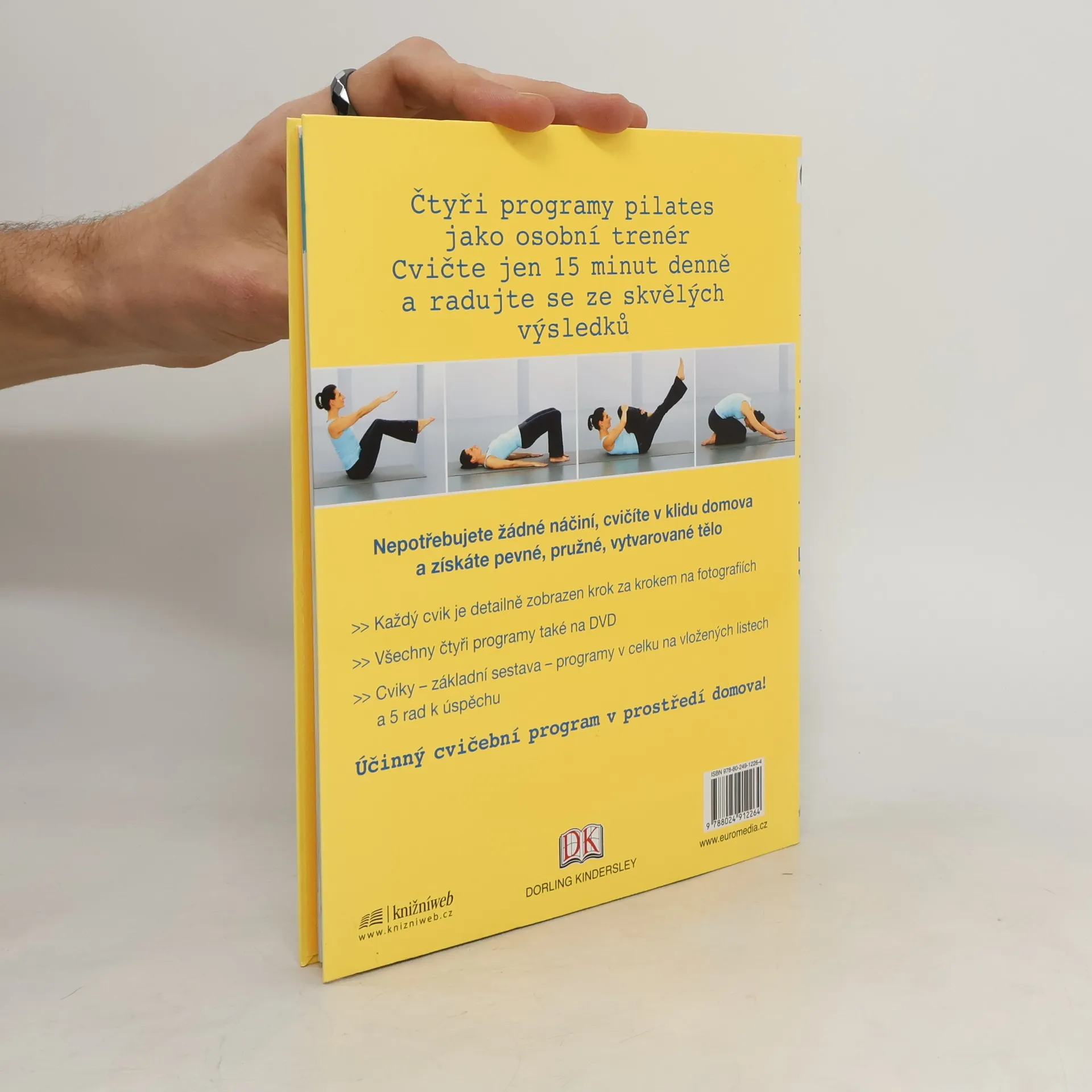 Čtyři programy pilates jako osobní trenér Cvičte jen 15 minut denně a radujte se ze skvělých výsledků Nepotřebujete žádné náčiní, cvičíte v klidu domova a získáte pevné, pružné, vytvarované tělo > Každý cvik je detailně zobrazen krok za krokem na fotografiích > Všechny čtyři programy také na DVD > Cviky – základní sestava – programy v celku na vložených listech – 5 rad k úspěchu Účinný cvičební program v prostředí domova!