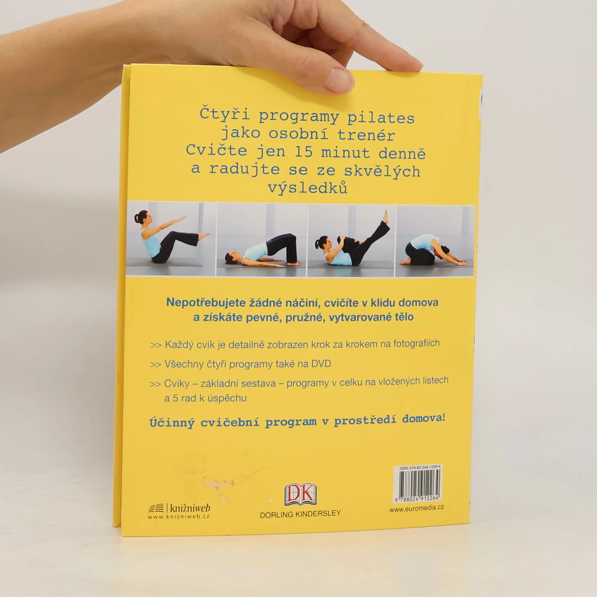 Čtyři programy pilates jako osobní trenér Cvičte jen 15 minut denně a radujte se ze skvělých výsledků Nepotřebujete žádné náčiní, cvičíte v klidu domova a získáte pevné, pružné, vytvarované tělo > Každý cvik je detailně zobrazen krok za krokem na fotografiích > Všechny čtyři programy také na DVD > Cviky – základní sestava – programy v celku na vložených listech – 5 rad k úspěchu Účinný cvičební program v prostředí domova!