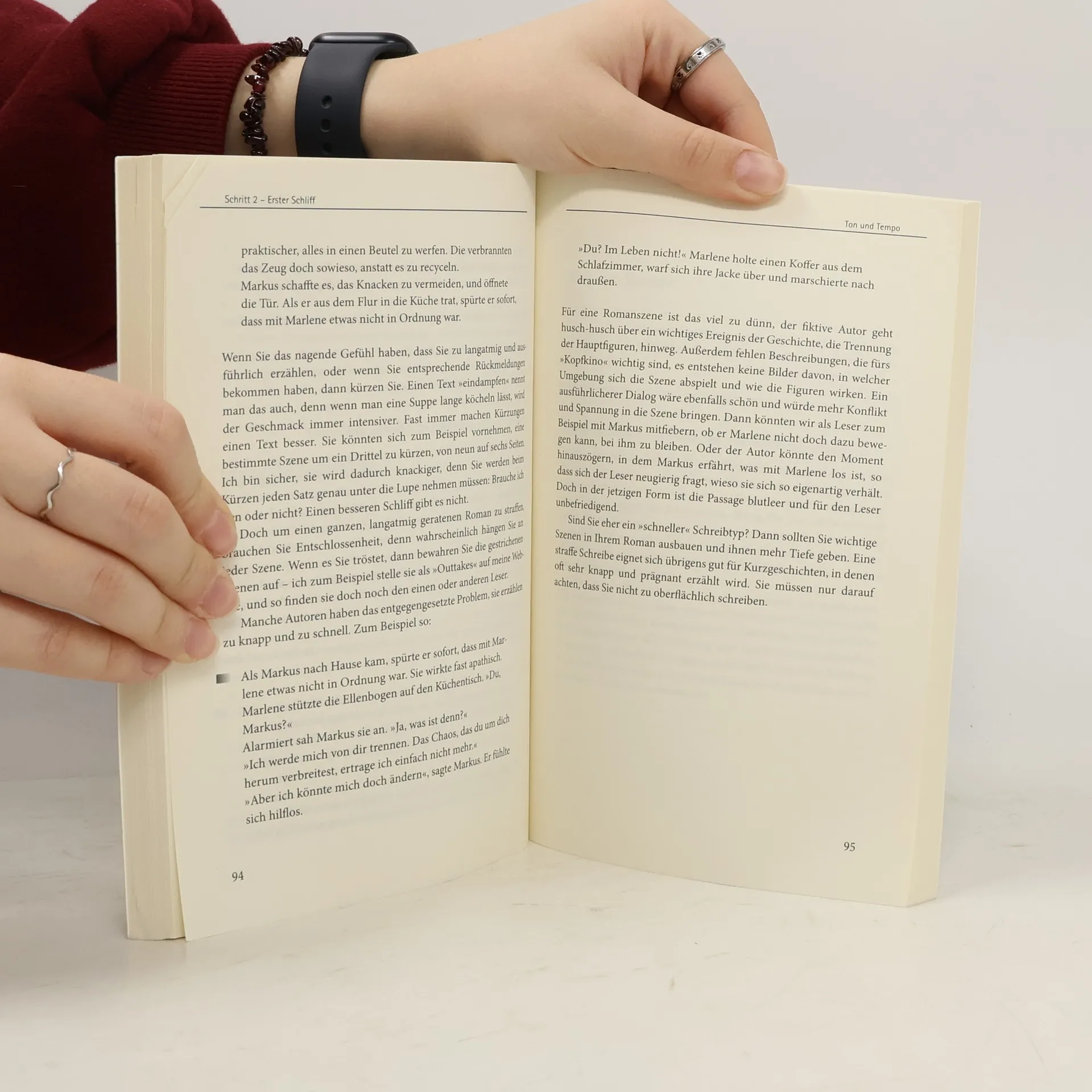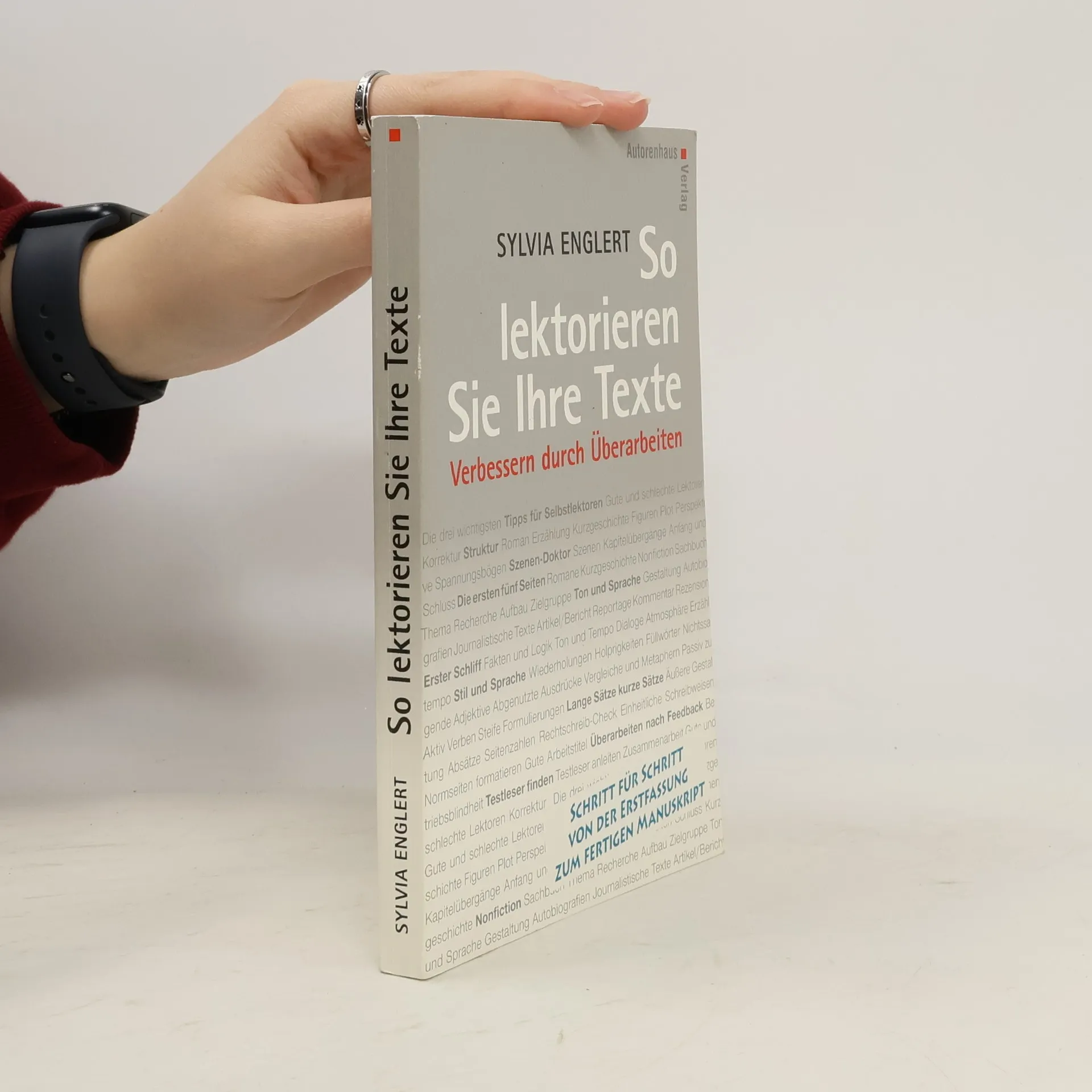 In Ihrem neuen Ratgeber empfiehlt Sylvia Englert, den Text in drei Schritten genauer unter die Lupe zu nehmen – zuerst geht es um grundsätzliche Dinge wie Struktur, Plot und Figuren überprüfen, denn die müssen funktionieren. Im zweiten Schritt, dem Schliff, geht es hauptsachlich um Stil, Sprache und Fakten. Der dritte Schritt ist, sich Meinungen von Testlesern zu holen, denn nur so bekommen Sie mit, wie andere Menschen auf Ihr Projekt reagieren. Wenn Sie deren Anregungen eingearbeitet haben, ist Ihr Manuskript vorzeigbar und bereit, ein Buch zu werden.
