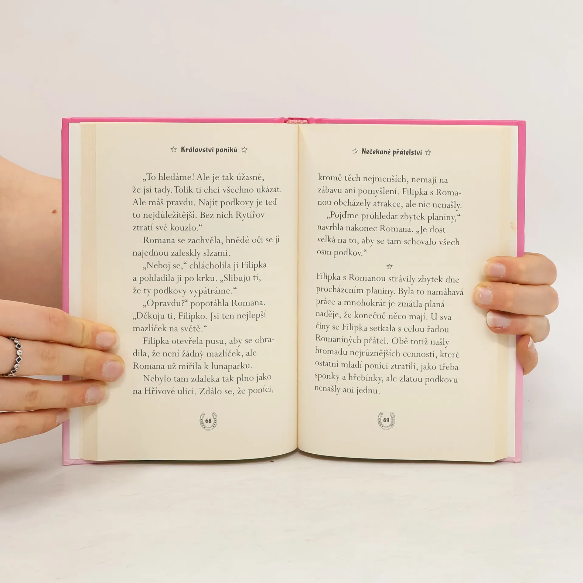 Uprostřed moře leží kouzelný ostrov, kde na hradě s mnoha věžemi vládne královská rodina poníků. Jednoho dne se ztratí osm kouzelných zlatých podkov a ostrov Rytířov se ocitne v ohrožení. Naštěstí ale poníkům přichází na pomoc holčička Filipka. Spolu s princeznou Romanou se vydávají na nebezpečnou výpravu s cílem ztracené podkovy najít. Dostanou se až k sopce ovládané zlými poníky? Podaří se jim společně zdolat všechny nástrahy a alespoň některou z podkov získat zpátky?