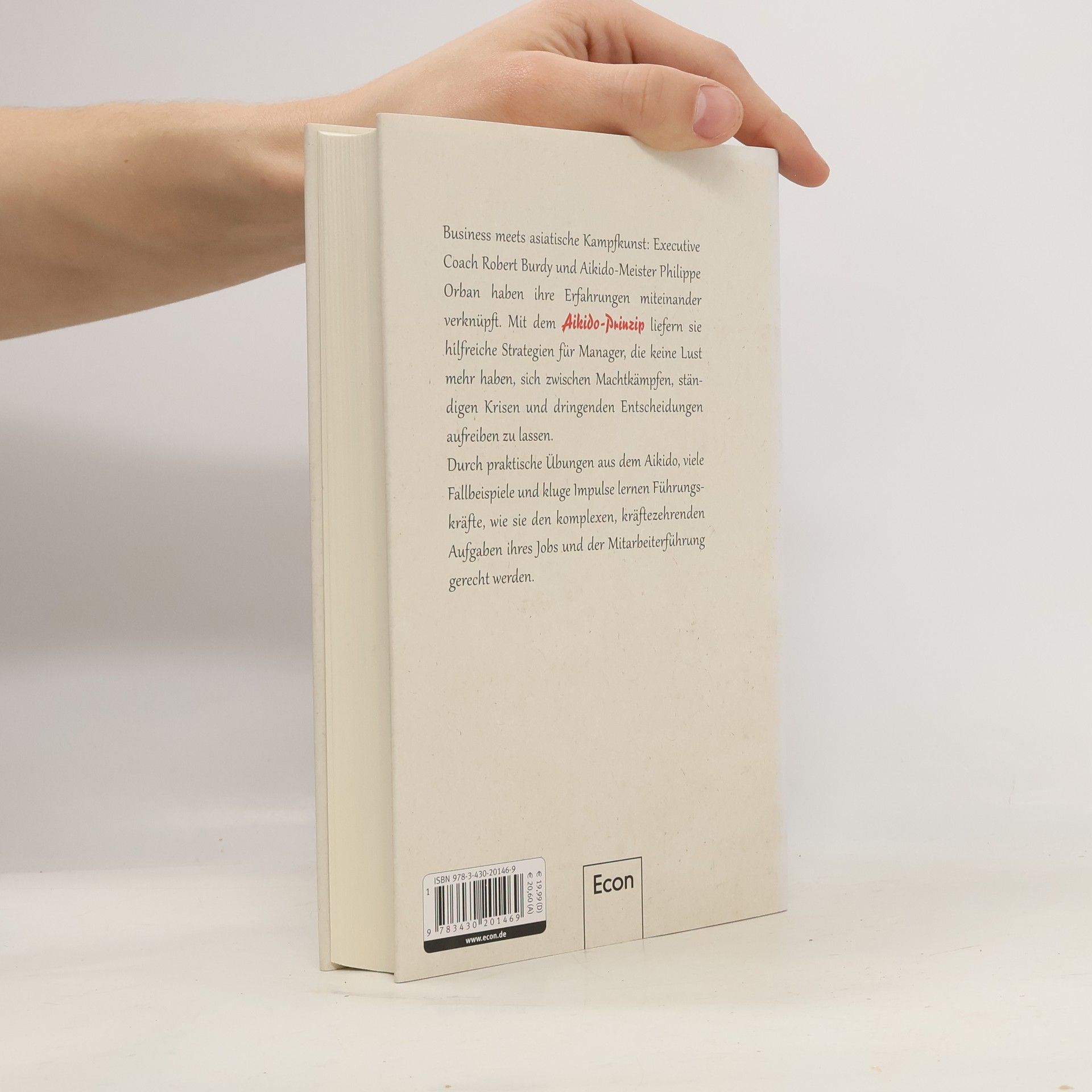 Business meets asiatische Kampfkunst: Executive Coach Robert Burdy und Aikido-Meister Philippe Orban haben ihre jeweiligen Erfahrungen miteinander verknüpft. Mit dem „Aikido-Prinzip“ liefern sie hilfreiche Strategien für Manager, die keine Lust mehr haben, sich zwischen Machtkämpfen, ständigen Krisen und dringenden Entscheidungen aufreiben zu lassen. Durch praktische Übungen aus dem Aikido, viele Fallbeispiele und kluge Impulse lernen Führungskräfte, wie sie den komplexen, kräftezehrenden Aufgaben ihres Jobs und der Mitarbeiterführung gerecht werden. Sie können so zu neuer Stärke, Effektivität und Ausgeglichenheit gelangen.