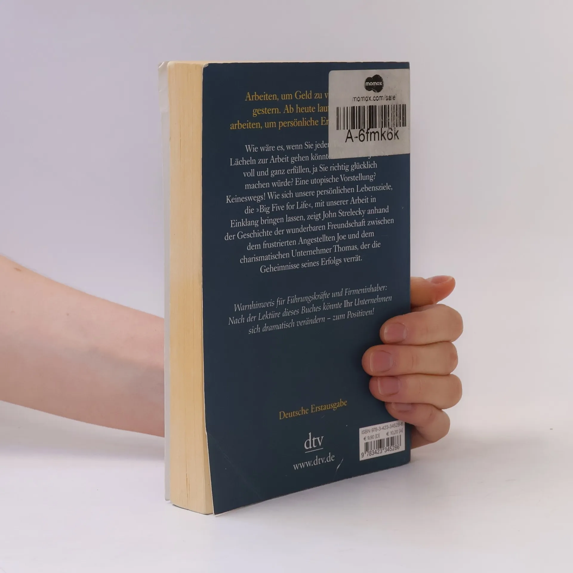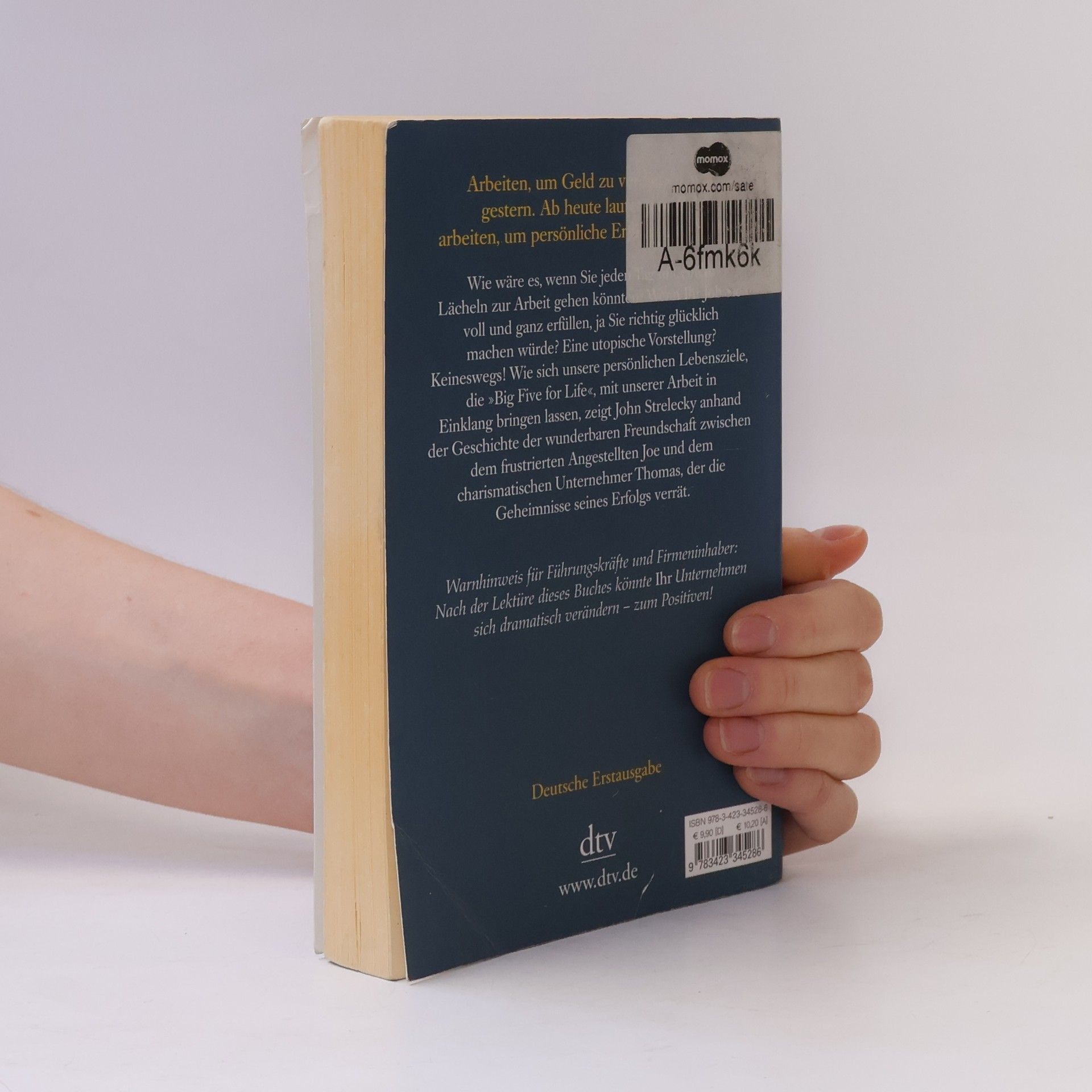 Arbeiten, um Geld zu verdienen, war gestern Durch Zufall lernt Joe, ein mit seinem Job unzufriedener Angestellter, den charismatischen Geschäftsmann Thomas kennen. Rasch entwickelt sich eine tiefe Freundschaft zwischen den beiden Männern. Thomas wird zu Joes Mentor und offenbart ihm die Geheimnisse seines Erfolgs. Er zeigt Joe, wie wichtig es ist, auch in der Arbeit erfüllt zu sein. Seine Unternehmen führt Thomas anhand zweier Leitlinien: Jeder Mitarbeiter muss seine Bestimmung sowie seine »Big Five for Life« kennen, also wissen, welche fünf Ziele er im Leben erreichen will. Diese Ideen helfen Joe, seine Wünsche zu verwirklichen. Doch Thomas will möglichst viele an seinem Wissen teilhaben lassen: Seine gesammelten Aufzeichnungen liegen hier vor Ihnen. Arbeiten, um Geld zu verdienen, war gestern. Ab heute lautet das Ziel: arbeiten, um persönliche Erfüllung zu finden.
