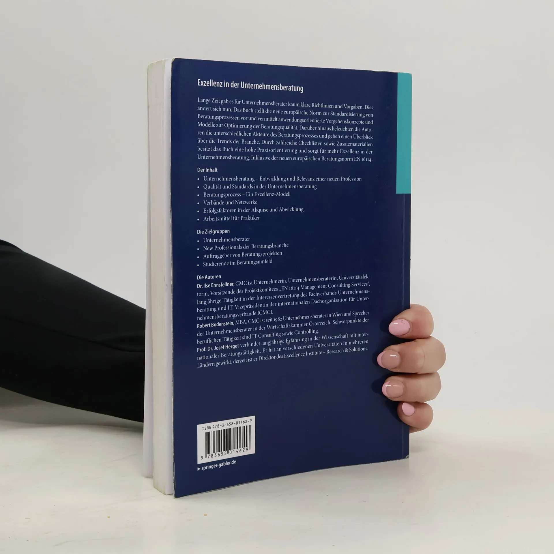 Lange Zeit gab es für Unternehmensberater kaum klare Richtlinien und Vorgaben. Dies ändert sich nun. Das Buch stellt die neue europäische Norm zur Standardisierung von Beratungsprozessen vor und vermittelt anwendungsorientierte Vorgehenskonzepte und Modelle zur Optimierung der Beratungsqualität. Darüber hinaus beleuchten die Autoren die unterschiedlichen Akteure des Beratungsprozesses und geben einen Überblick über die Trends der Branche. Durch zahlreiche Checklisten sowie eine Zusammenstellung von Zusatzmaterialen für die Professionals besitzt das Buch eine hohe Praxisorientierung und sorgt für mehr Exzellenz in der Unternehmensberatung. Inklusive der neuen europäischen Norm EN 16114.