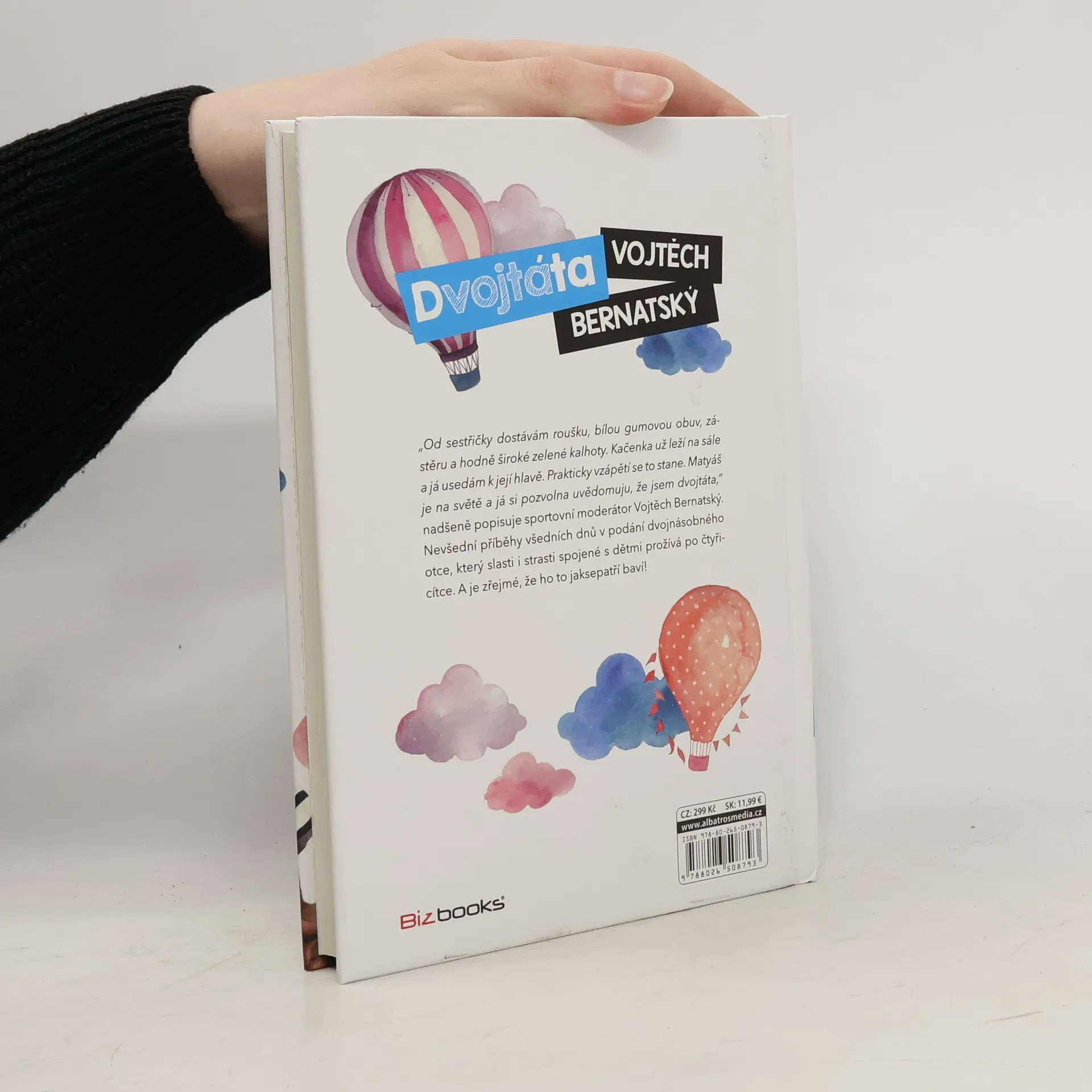 Tátou po čtyřicítce? Pro známého českého moderátora žádný problém. Tedy skoro žádný. „Od sestřičky dostávám roušku, bílou gumovou obuv, zástěru a hodně široké zelené kalhoty. Kačenka už leží na sále a já usedám k její hlavě. Prakticky vzápětí se to stane. Matyáš je na světě a já si pozvolna uvědomuju, že jsem dvojtáta,“ nadšeně popisuje sportovní moderátor Vojtěch Bernatský. Nevšední příběhy všedních dnů v podání dvojnásobného otce, který slasti i strasti spojené s dětmi prožívá po čtyřicítce. A je zřejmé, že ho to jaksepatří baví!