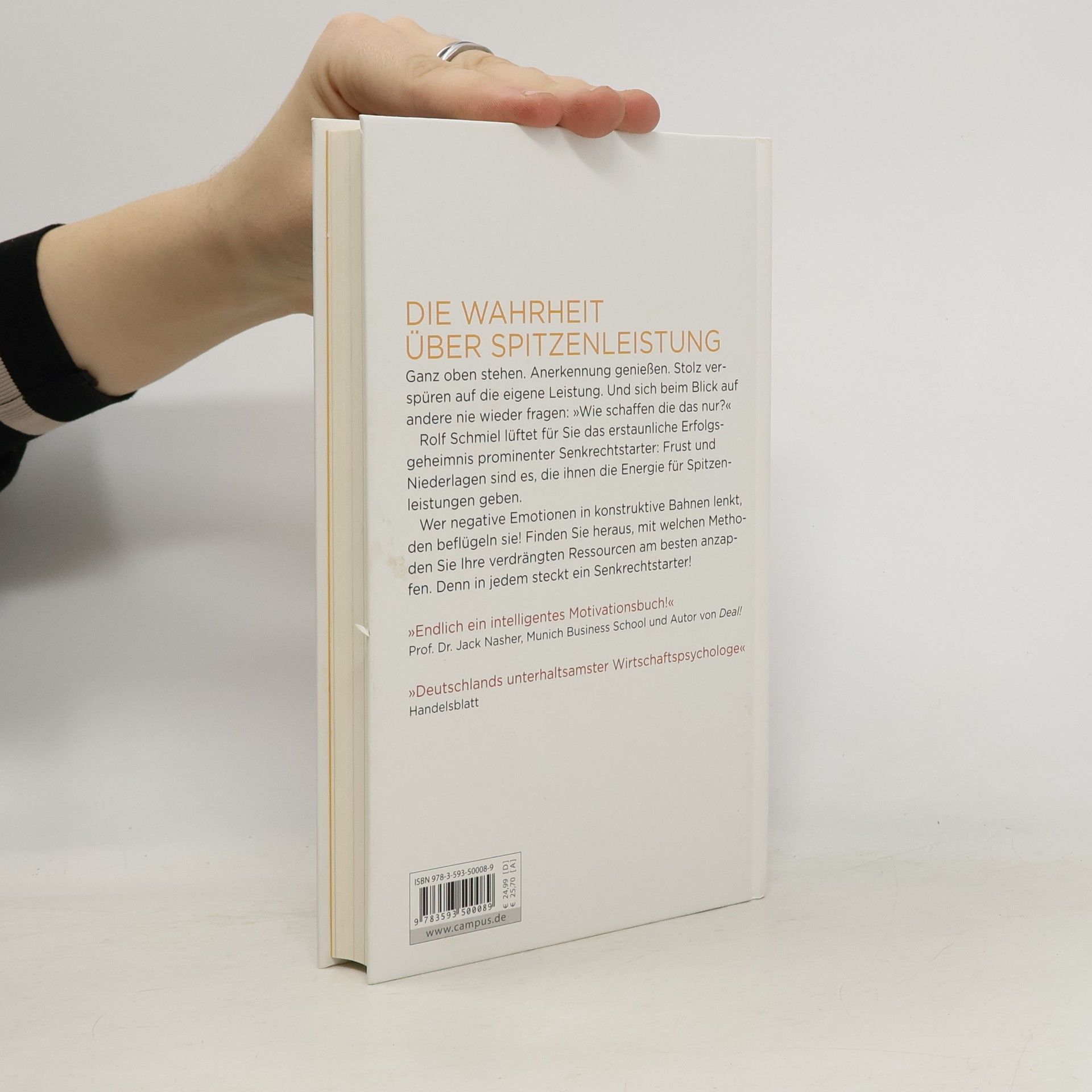 Die Wahrheit über Spitzenleistung Ganz oben stehen. Anerkennung genießen. Stolz verspüren auf die eigene Leistung. Und sich beim Blick auf andere nie wieder fragen: „Wie schaffen die das nur?“ Rolf Schmiel - „Deutschlands unterhaltsamster Wirtschaftspsychologe“ (Handelsblatt) - lüftet für Sie das erstaunliche Erfolgsgeheimnis prominenter Senkrechtstarter: Frust und Niederlagen sind es, die ihnen die Energie für Spitzenleistungen geben. Emotionen wie Zorn, Neid und Arroganz sind natürliche Reaktionen auf erlittenes Unrecht. Wer sie in sich hineinfrisst, leidet. Wer sie aber in konstruktive Bahnen lenkt, den beflügeln sie! Finden Sie heraus, welcher Motivationstyp Sie sind und mit welchen Methoden Sie Ihre verdrängten Ressourcen am besten anzapfen. Wollen, tun und durchstarten - in jedem steckt ein Senkrechtstarter! „Der Psychologe unter den Motivationstrainern.“ Süddeutsche Zeitung „Endlich ein intelligentes Motivationsbuch!“ Prof. Dr. Jack Nasher, Munich Business School, Autor von Deal!