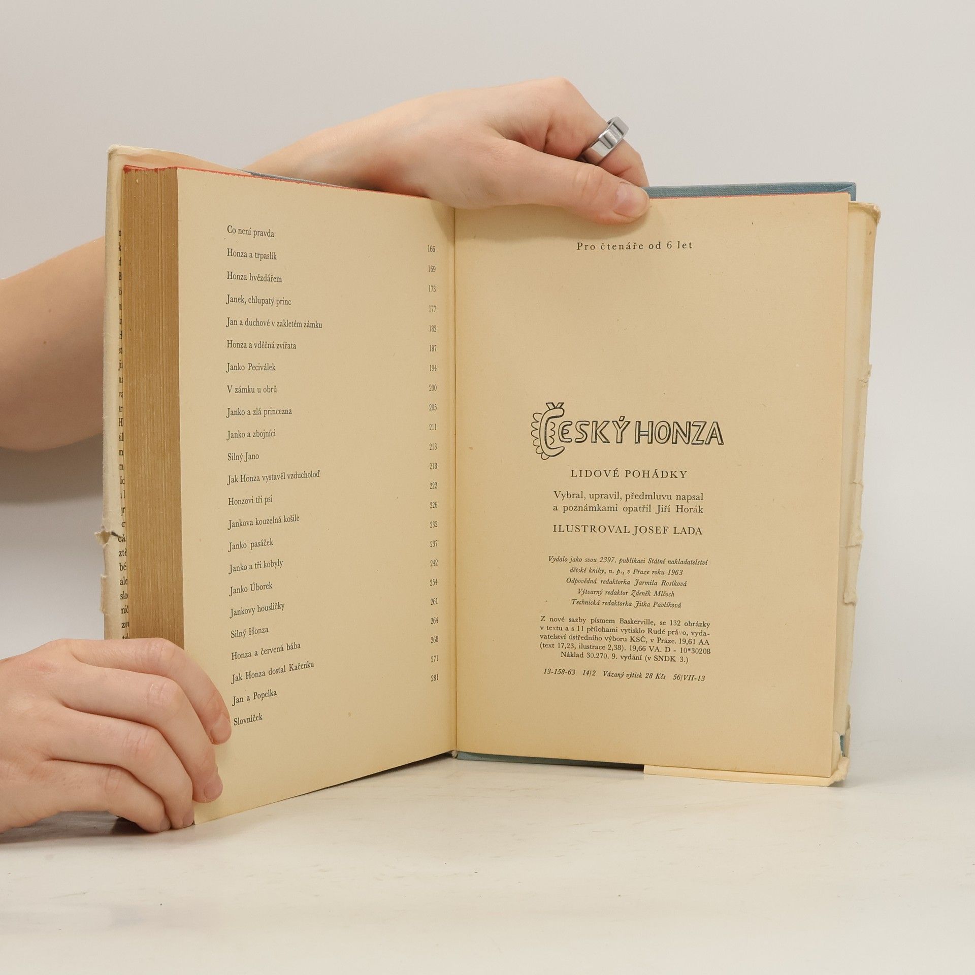 Chytrý, silný, odvážný, důvtipný, ale také třeba líný, nerozhodný, mladík, který tropí spoustu šibalských kousků - ano, takový může být Honza. Humorné pohádky o českém Honzovi sebral a upravil Jiří Horák, obrázky k nim nakreslil Josef Lada. V knížce najdeme vyprávění o tom, jak se stal Honza čarodějem, lékařem nebo dokonce hvězdářem, jak se učil tajné řeči, jak rozesmál princeznu a mnoho dalších příhod, v nichž Honza vtipem a chytrostí zvítězí nad svými protivníky.