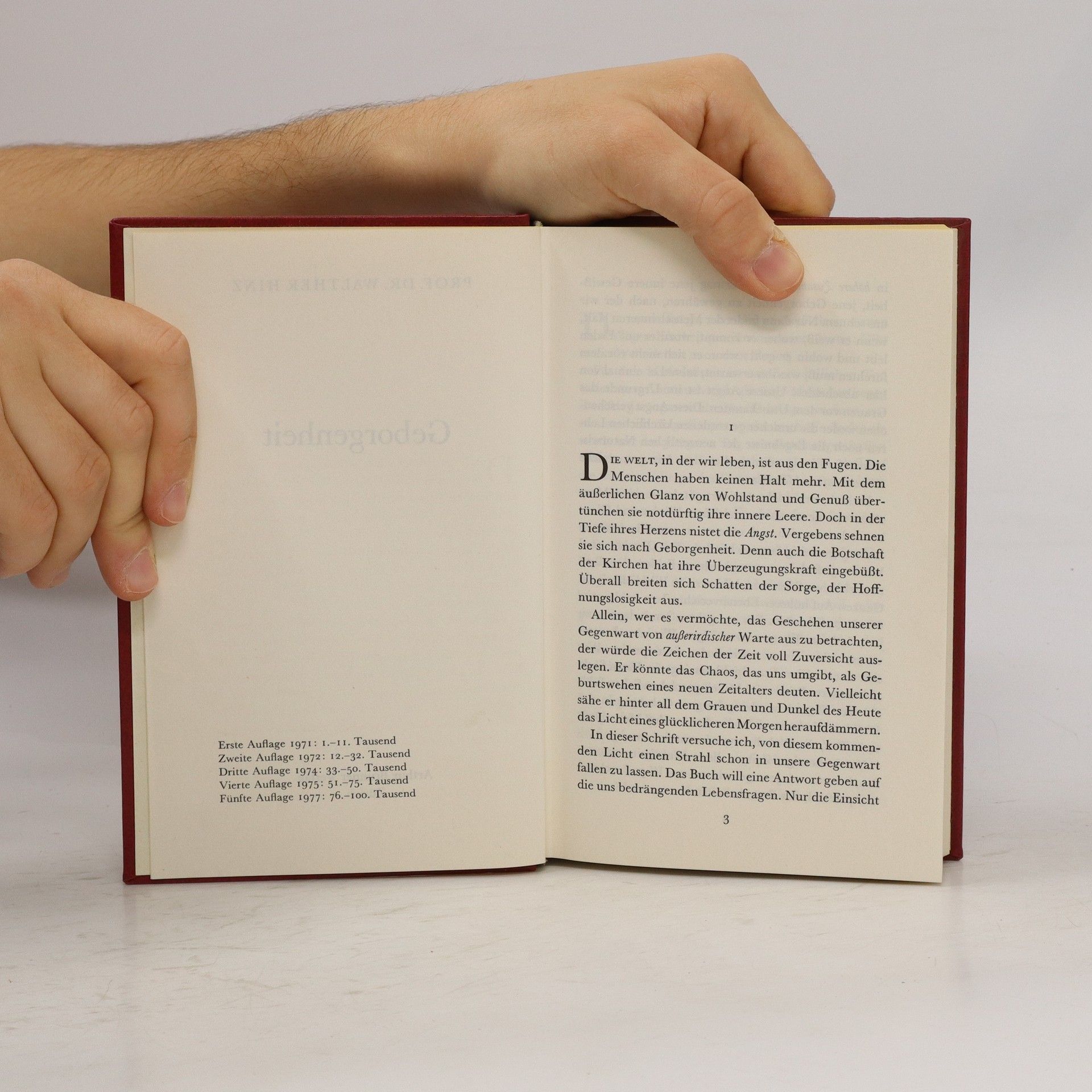 Das von Prof. Dr. Walther Hinz verfasste Buch „Geborgenheit“ erschien 1971 und wurde in nur zehn Jahren über 100'000-mal verkauft. Der grosse Erfolg des Buches beruht darauf, dass es Glauben und Wissen vereint und dem Leser nachvollziehbare Antworten auf seine Lebensfragen gibt. Das Buch beschreibt in vierzig Abschnitten unser Dasein vor der irdischen Geburt und unser Fortleben über das Erdendasein hinaus. Aus dem Inhalt: – Was geschieht beim Sterben? – Zeugnisse vom Leben nach dem Tode – Einblicke in die jenseitige Welt und ihre Sphären – Vom Sinn und Zweck der Wiedergeburt – Vorbereitung auf ein neues Erdenleben – Die Schutz- und Führergeister des Menschen – Verstorbene berichten von ihren Erlebnissen in der jenseitigen Welt Walther Hinz (1906–1992) war Professor für Geschichte des Nahen Ostens und Orientalische Philologie an der Universität Göttingen. Als Fachgelehrter erlangte er internationale Bedeutung durch seine bahnbrechende Forschung bei der Entzifferung der elamischen Schrift.