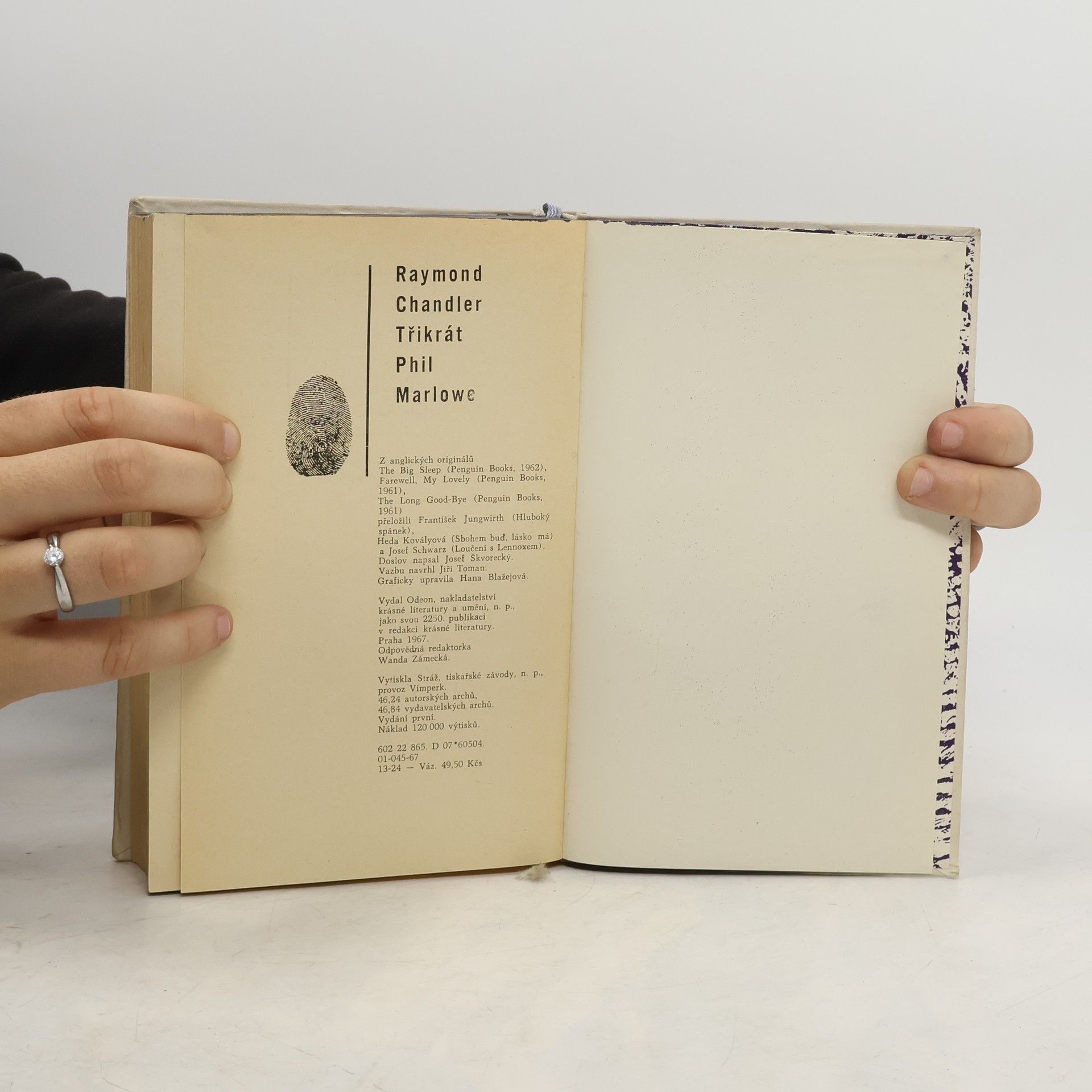Tento svazek obsahuje díla vydaná samostatně: Hluboký spánek (The big sleep, 1939), Loučení s Lennoxem (The long goodbye, 1954), Sbohem buď, lásko má (Farewell, my lovely, 1940). Tři detektivky napsané zakladatelem americké drsné školy, nejvýznamnějším zástupcem tzv. Hard-boiled fiction. Z anglických originálů The Big Sleep (Penguin Books, 1962), Farewell, My Lovely (Penguin Books, 1961), The Long Good-Bye (Penguin Books, 1961) přeložili František Jungwirth (Hluboký spánek), Heda Kovályová (Sbohem buď, lásko má) a Josef Schwarz (Loučení s Lennoxem). Doslov (Raymond Chandler a souvislosti „drsné školy“) napsal Josef Škvorecký. Vydání první.