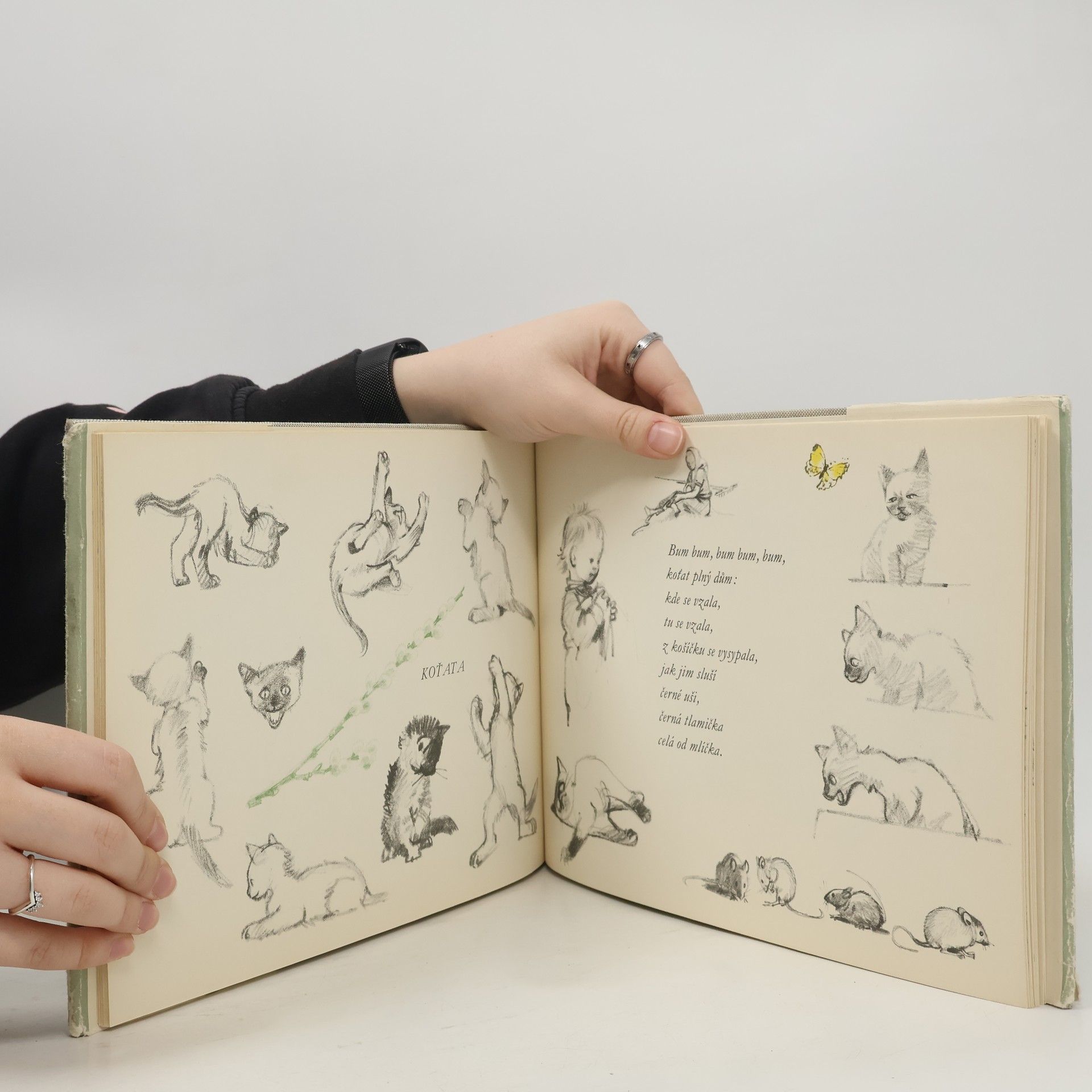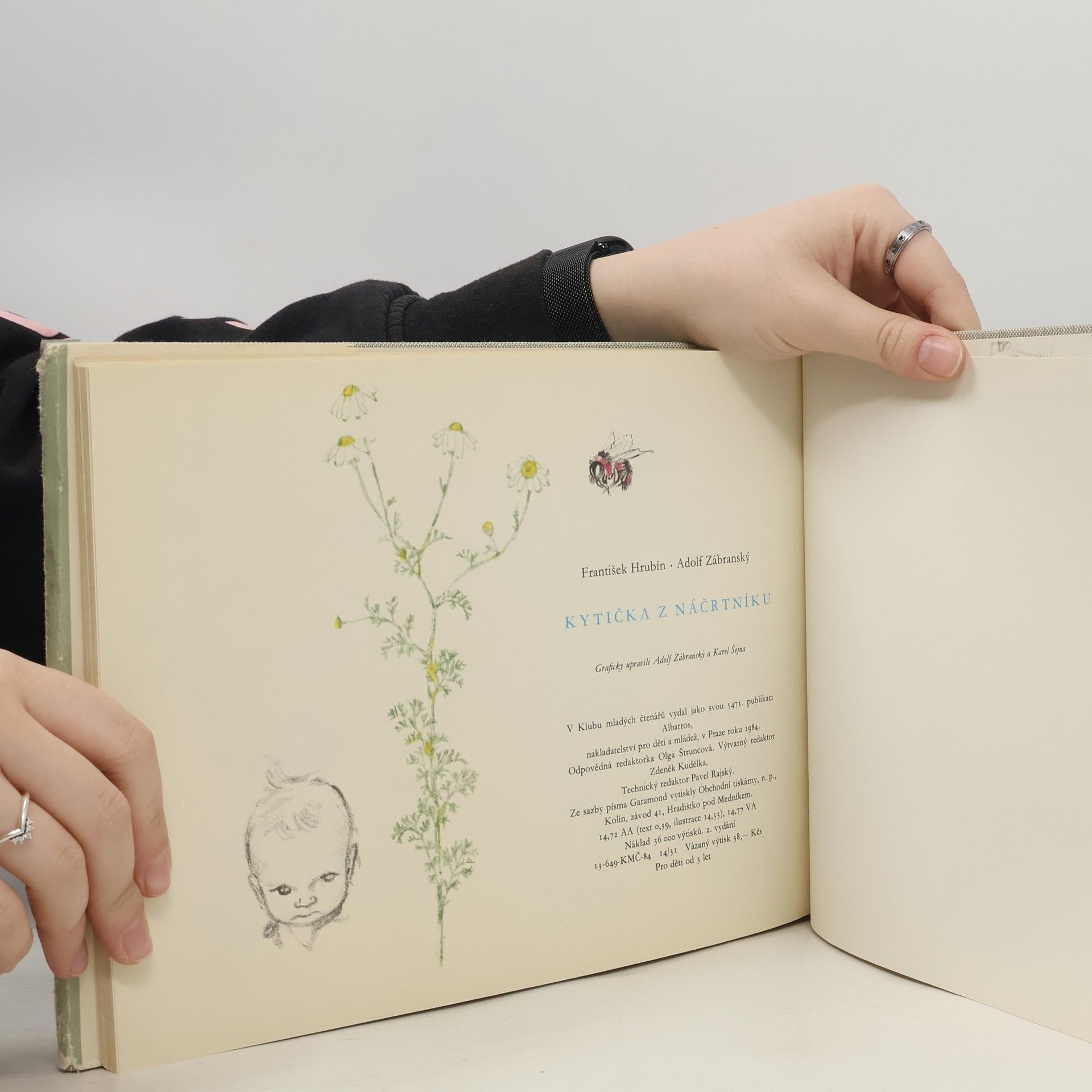 Kouzelné obrázky miminek, batolat s maminkami, zvířátek, motýlů atd. Uhlem, tužkou, jemně podkreslené barvami, jako z náčrtníku. To vše doplněné verši Františka Hrubína. Jedna z nejkrásnějších knížek o dětech a nejen pro děti.