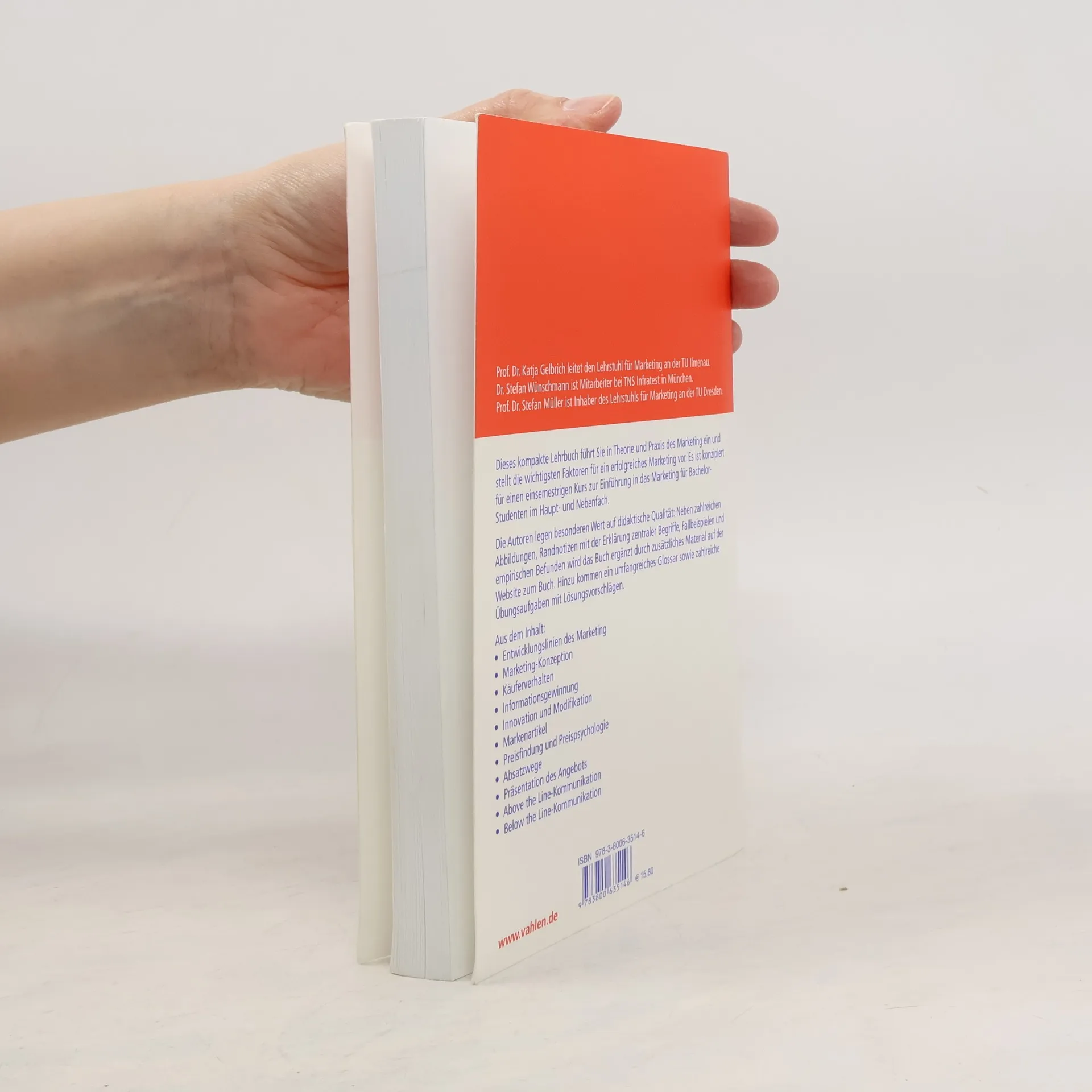 Ideal für die Pflichtvorlesung: Kurze, prägnante und didaktisch geschickte Einführung in das Marketing Dieses kompakte Lehrbuch führt Sie in Theorie und Praxis des Marketing ein und stellt die wichtigsten Faktoren für ein erfolgreiches Marketing vor. Es ist konzipiert für einen einsemestrigen Kurs zur Einführung in das Marketing für Bachelor-Studenten im Haupt- und Nebenfach. Die Autoren legen besonderen Wert auf didaktische Qualität: Neben zahlreichen Abbildungen, Randnotizen mit der Erklärung zentraler Begriffe, Fallbeispielen und empirischen Befunden wird das Buch ergänzt durch zusätzliches Material auf der Website zum Buch. Hinzu kommen ein umfangreiches Glossar sowie zahlreiche Übungsaufgaben mit Lösungsvorschlägen. * Entwicklungslinien des Marketing * Marketing-Konzeption * Käuferverhalten * Informationsgewinnung * Innovation und Modifikation * Markenartikel * Preisfindung und Preispsychologie * Absatzwege * Präsentation des Angebots * Above the Line-Kommunikation * Below the Line-Kommunikation Die Autoren Prof. Dr. Katja Gelbrich leitet den Lehrstuhl für Marketing an der TU Ilmenau. Dr. Stefan Wünschmann ist Mitarbeiter bei TNS Infratest in München. Prof. Dr. Stefan Müller ist Inhaber des Lehrstuhls für Marketing an der TU Dresden.