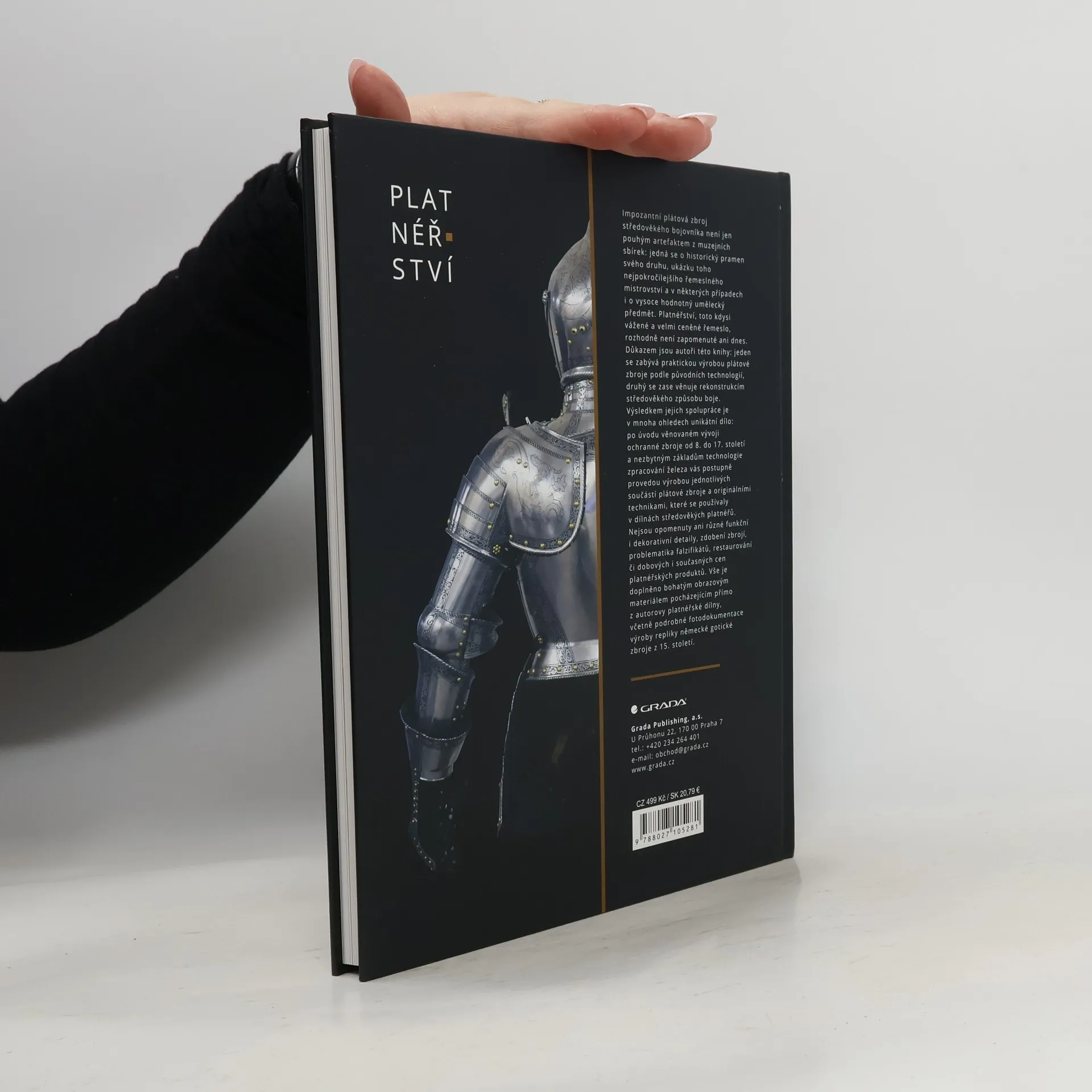 Impozantní plátová zbroj středověkého bojovníka není jen pouhým artefaktem z muzejních sbírek: jedná se o historický pramen svého druhu, ukázku toho nejpokročilejšího řemeslného mistrovství a v některých případech i o vysoce hodnotný umělecký předmět. Platnéřství, toto kdysi vážené a velmi ceněné řemeslo, rozhodně není zapomenuté ani dnes. Důkazem jsou autoři této knihy: jeden se zabývá praktickou výrobou plátové zbroje podle původních technologií, druhý se zase věnuje rekonstrukcím středověkého způsobu boje. Výsledkem jejich spolupráce je v mnoha ohledech unikátní dílo: po úvodu věnovaném vývoji ochranné zbroje od 8. do 17. století a nezbytným základům technologie zpracování železa vás postupně provedou výrobou jednotlivých součástí plátové zbroje a originálním technikami, které se používaly v dílnách středověkých platnéřů. Nejsou opomenuty ani různé funkční i dekorativní detaily, zdobení zbrojí, problematika falzifikátů, restaurování či dobových i současných cen platnéřských produktů. Vše je doplněno bohatým obrazovým materiálem pocházejícím přímo z autorovy platnéřské dílny, včetně podrobné fotodokumentace výroby repliky německé gotické zbroje z 15. století.